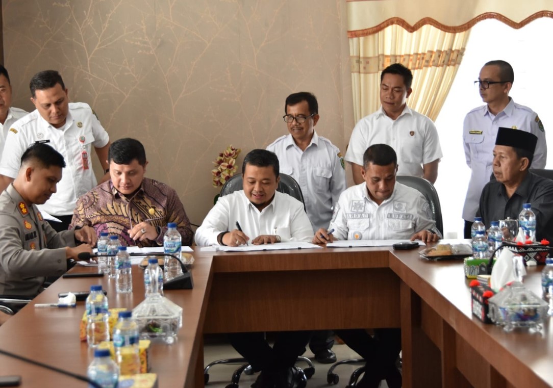 Gedung Mako Polres Tapanuli Selatan dan Mako Polres Padang Lawas Utara, di Ruang Rapat Bupati Tapsel, Lantai II Kantor Bupati setempat, Rabu (24/5).