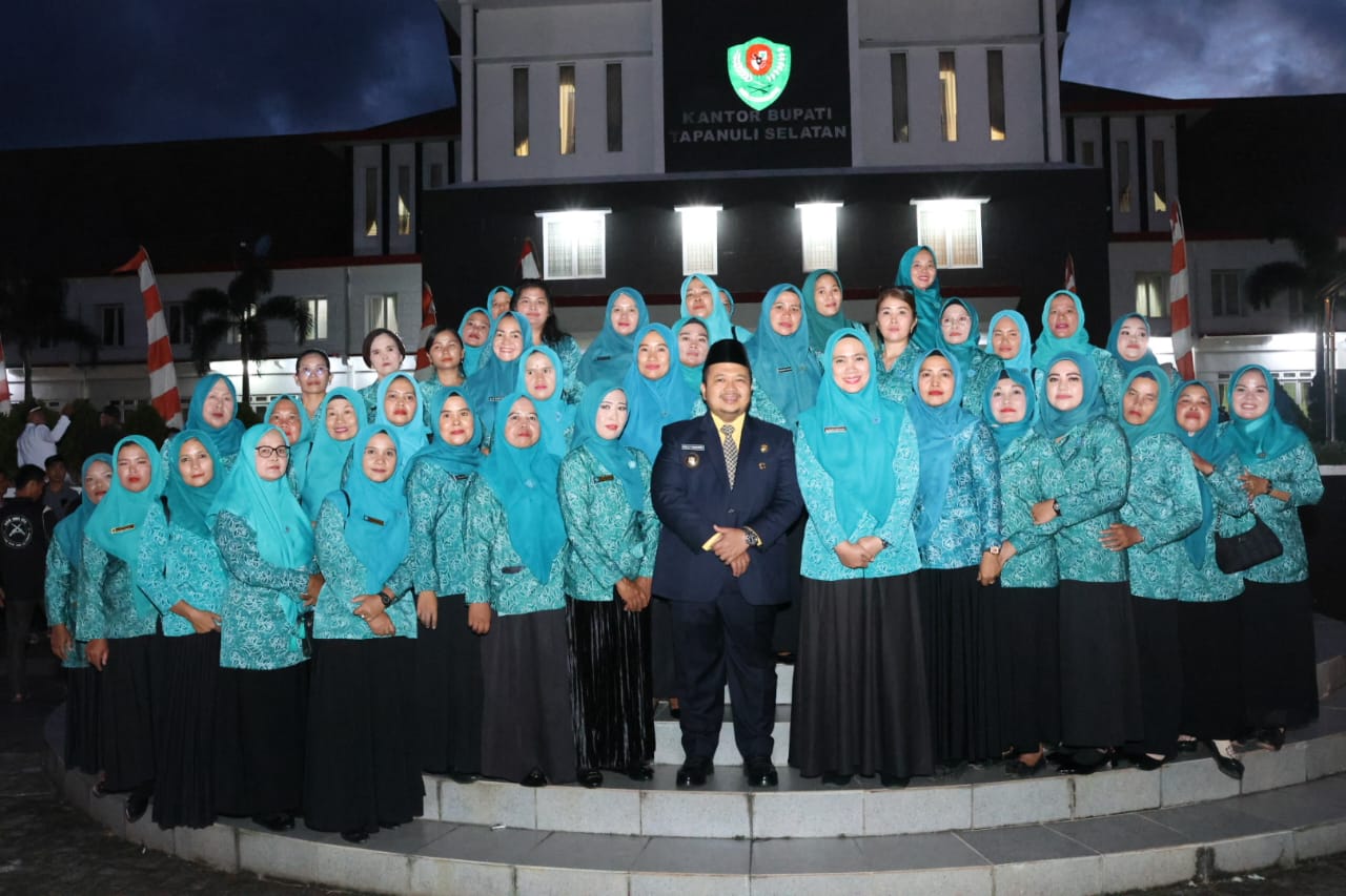 Turut hadir, Plh Sekda, para Asisten, Staf Ahli Bupati, Pimpinan OPD, Ketua TP PKK Tapsel, Camat beserta Ketua TPP PKK Kecamatan se-Tapsel, dan pendamping serta keluarga dari kades yang dilantik kembali. (Prokopim Tapsel)