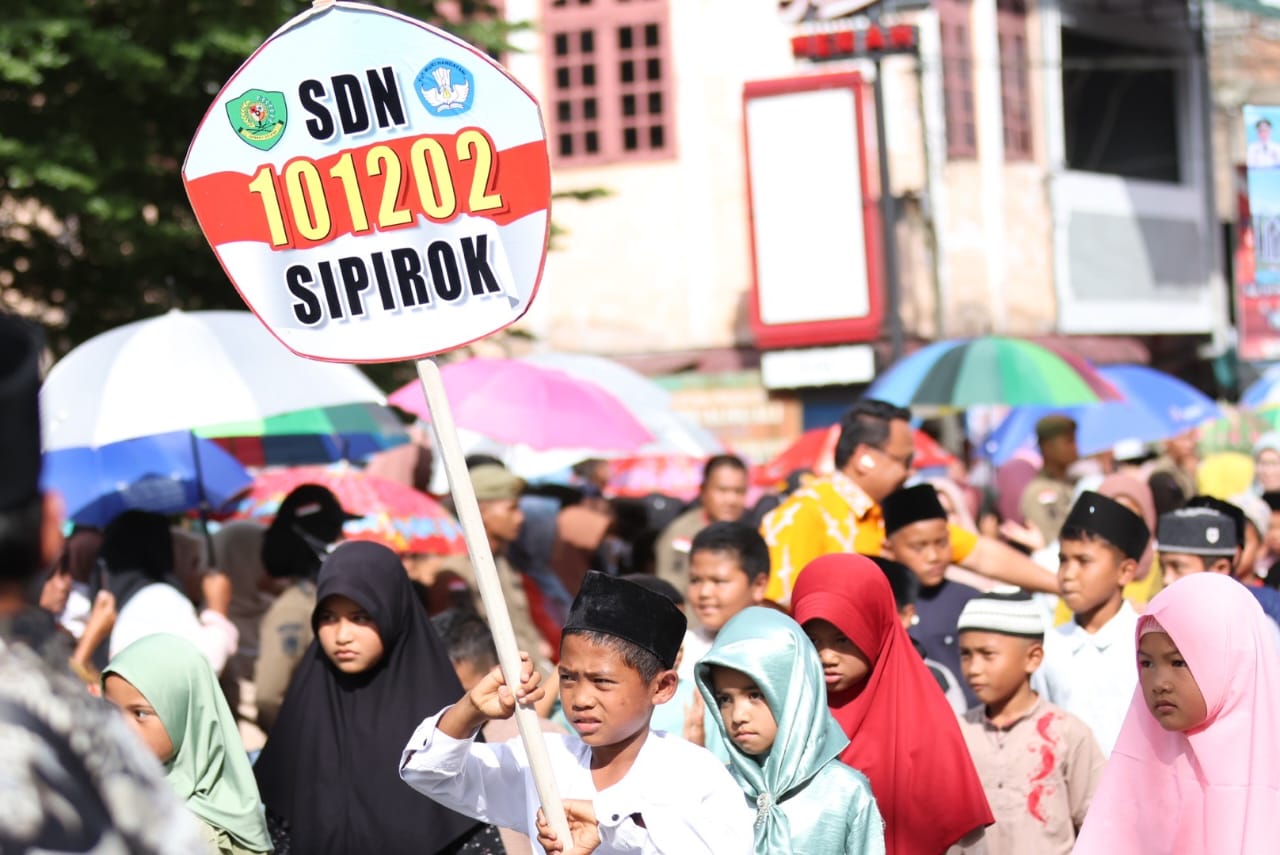 IKNews, TAPANULI SELATAN – Kafilah dari berbagai kabupaten/kota se-Sumatera Utara ikut meriahkan Pawai Taaruf Musabaqah Tilawatil Qur’an (MTQ) ke-39 tingkat Provinsi Sumatera Utara (Sumut), di Adian Pardomuan Sipirok, Kecamatan setempat, Kamis (20/6).