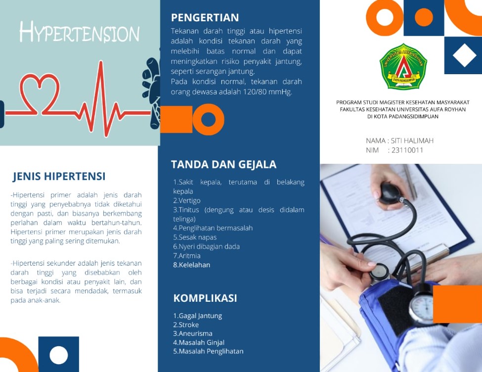 “Hipertensi merupakan penyebab kematian dan kesakitan terbanyak di seluruh dunia, baik di negara berkembang maupun maju. Setiap tahunnya, diperkirakan 10 juta orang meninggal akibat penyakit ini,” ujar Siti halimah mahasiswa S2 kesehatan Aufa Royhan.