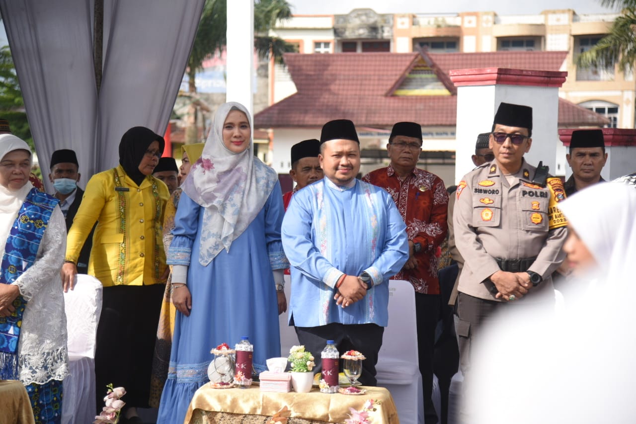 Bupati Tapsel Dolly Pasaribu dan Ketua TP PKK Ny. Rosalina Dolly Pasaribu tampak menikmati lantunan merdu drum band yang ditampilkan, dan menyambut peserta pawai dengan senyuman khasnya yang hangat.