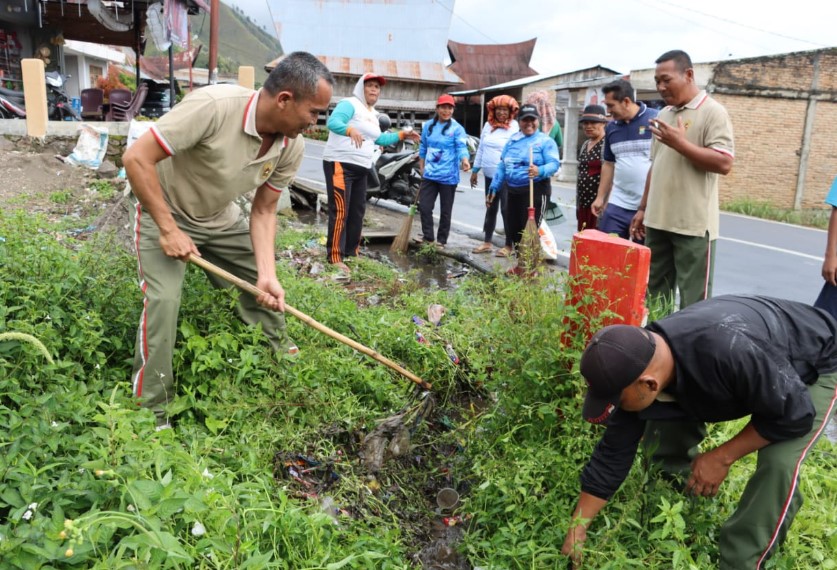 Tak hanya di Kecamatan Silahibungan, petugas yang juga dibantu oleh Dinas Pariwisata dan Dinas Kebersihan juga melakukan pembersihan di Kawasan simpang tiga Kecamatan Sitinjo.
