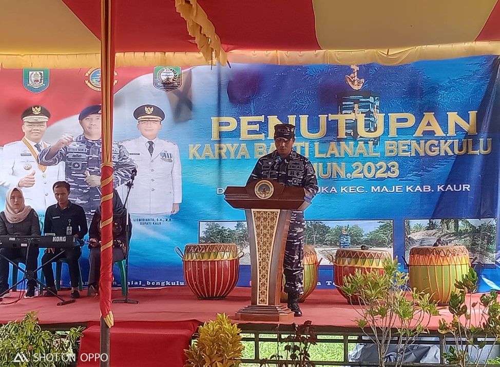 IKNews, KAUR – Komandan Pangkalan TNI Angkatan Laut (Danlanal) Bengkulu Letnan kolonel (Letkol) Laut (P) Nyoman Gede Pradnyana A.S bersama Wakil Gubernur Bengkulu Dr. H. Rosjonsyah Syahili Sibarani, S.I.P., M.Si didampingi Wakil Bupati Kaur Herlian Muchrim, ST dan Forkokimda menutup secara resmi kegiatan Karya Bakti Pangkalan TNI AL Bengkulu Tahun 2023 di desa Pardasuka Kecamatan Maje Kabupaten Kaur, Selasa (9/5/2023).