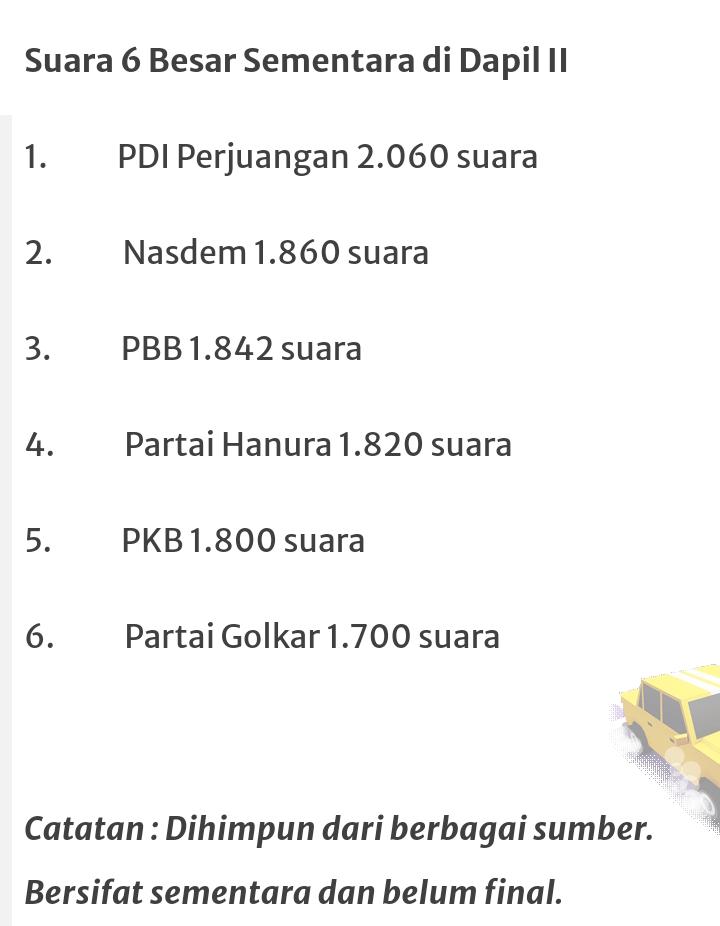 Ini adalah hasil sementara, dan di himpun dari berbagai informasi.