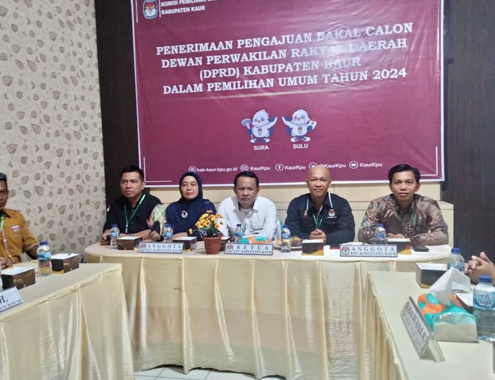 Setelah seremoni penyambutan selesai, rombongan bacaleg ini diterima jajaran KPUD Kaur, dan disaksikan pihak Bawaslu Kabupaten Kaur Provinsi Bengkulu.
