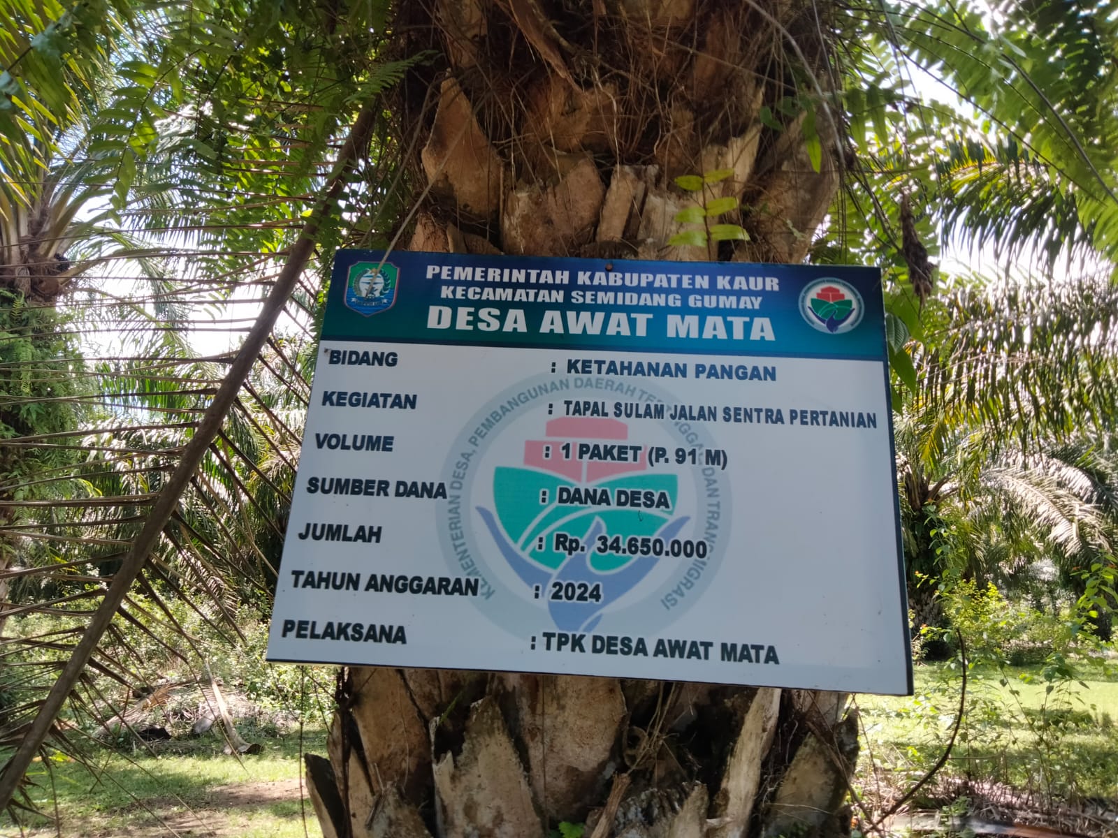 Pekerjaan Tambal sulam Jalan sentra pertanian Desa Awat Mata kecamatan Semidang gumai dengan kegiatan yang di lakukan oleh warga desa melalui dana desa,  Tambal Sulam Jalan Usaha Tani (JUT).