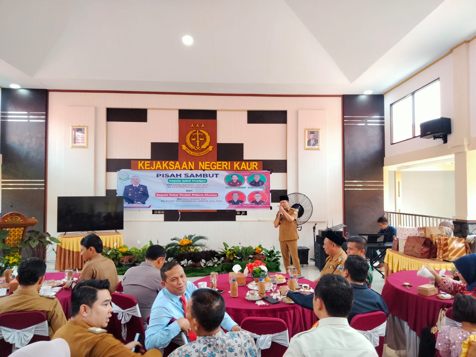 Acara Pisah sambut pejabat di lingkungan Kejaksaan Negeri Kaur berlangsung dengan penuh hikmat dan kekeluargaan, turut hadir dalam acara tersebut, Wakil Bupati Kaur beserta Jajaran dan petinggi di lingkungan Pemda Kaur serta undangan lainnya, seperti pihak kepolisian, Polres Kaur dan juga tampak hadir Dandim 0408 BS-Kaur.
