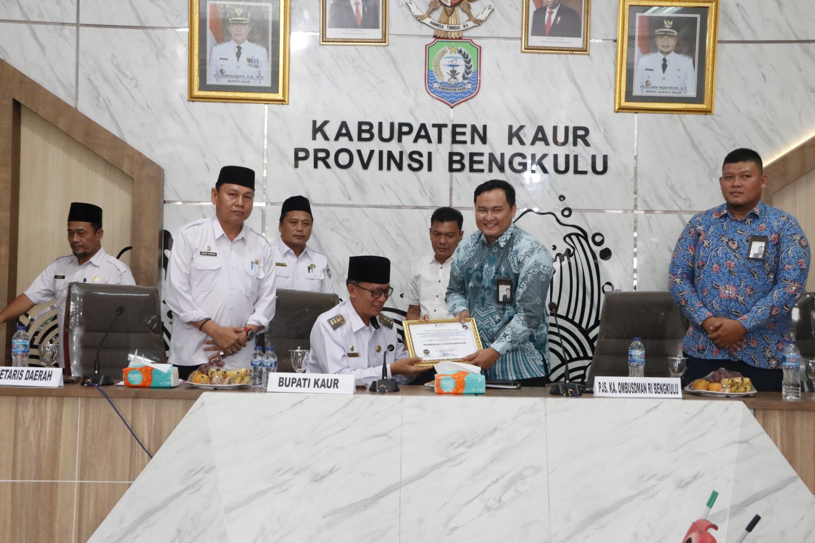 Acara ini juga sekaligus pemberian sertifikat pelayanan publik kepada OPD di lingkup pemda Kaur.