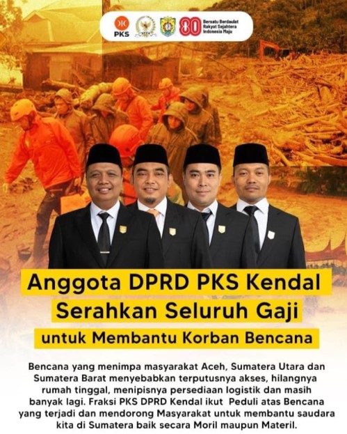 Lima Legislator PKS Kendal Sumbangkan Seluruh Gaji untuk Korban Bencana Sumatera