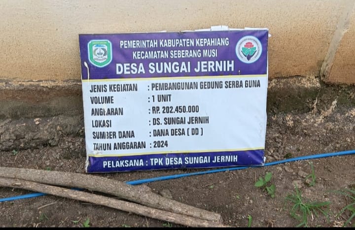 Pembangunan Gedung Serba Guna di Desa Sungai Jernih Tertunda, Anggaran Ratusan Juta Masih Belum CukupMemprihatinkan, Perlu Tindakan Pemerintah dan APH, (28/12/2024).