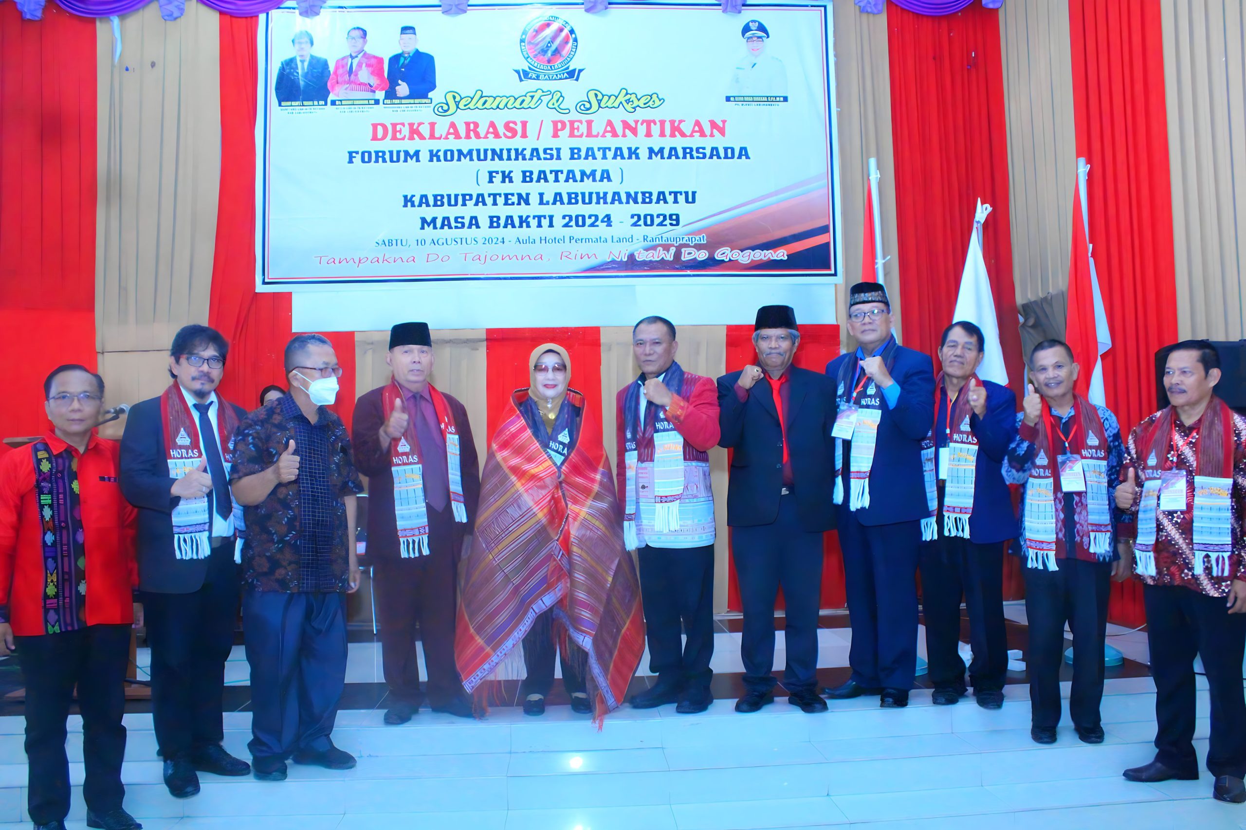 BNews, LABUHANBATU – Pelaksana Tugas (Plt) Bupati Labuhanbatu Hj. Ellya Rosa Siregar, S.Pd, MM menghadiri pelantikan Forum Komunikasi Batak Marsada (Batama) sekaligus Deklarasi Pengurus FK Batama Kecamatan Rantau Utara, Rantau Selatan dan Kecamatan Bilah Barat Masa Bakti 2024-2029 di Ballroom Hotel Permata Land Rantauprapat, Jl. Ahmad Yani – Rantauprapat. Sabtu (10/08/2024).