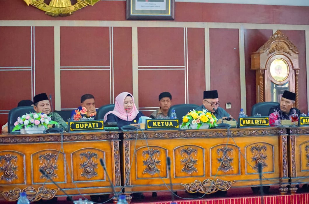 Rapat Paripurna tersebut dibuka dan dipimpin oleh Wakil Ketua DPRD Labuhanbatu, Maysarah, dan dihadiri oleh Wakil Bupati Labuhanbatu H. Jamri, ST., para Anggota DPRD, sejumlah Kepala Organisasi Perangkat Daerah (OPD), serta tamu undangan lainnya.