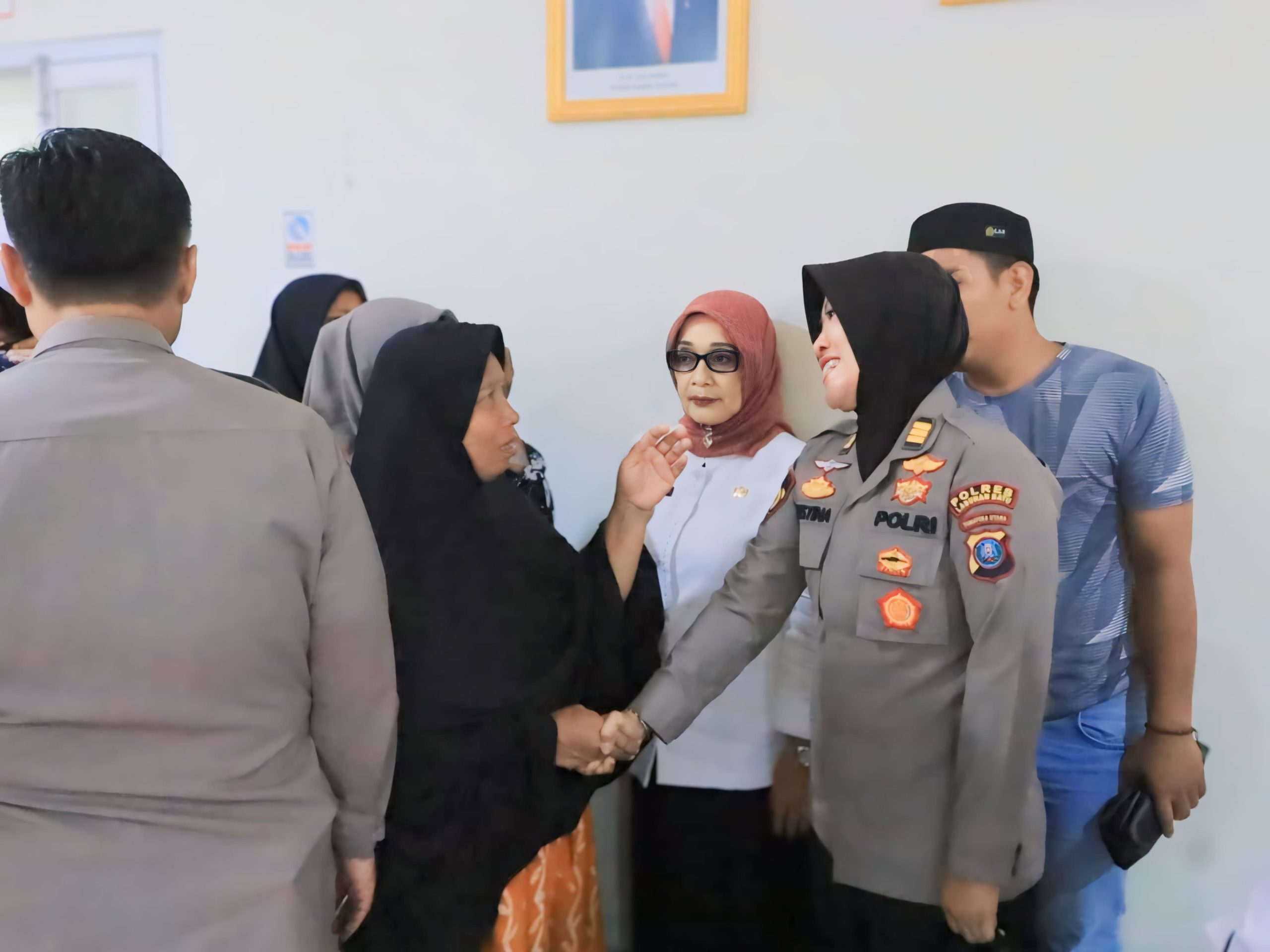 Pelaksana Tugas Bupati Labuhanbatu Hj. Ellya Rosa Siregar, S.Pd,MM didampingi Dandim 0209/LB Letkol Inf Yudy Aditya Saputro, dan Kapolres Labuhanbatu AKBP Dr. Bernhard L Malau mediasi dengan Keluarga Almarhum Marhan Harahap di Ruang Rapat RSUD Rantauprapat, Jl. KH Dewantara, Sioldengan, Kecamatan Rantau Selatan, Rabu (20/03/2024).