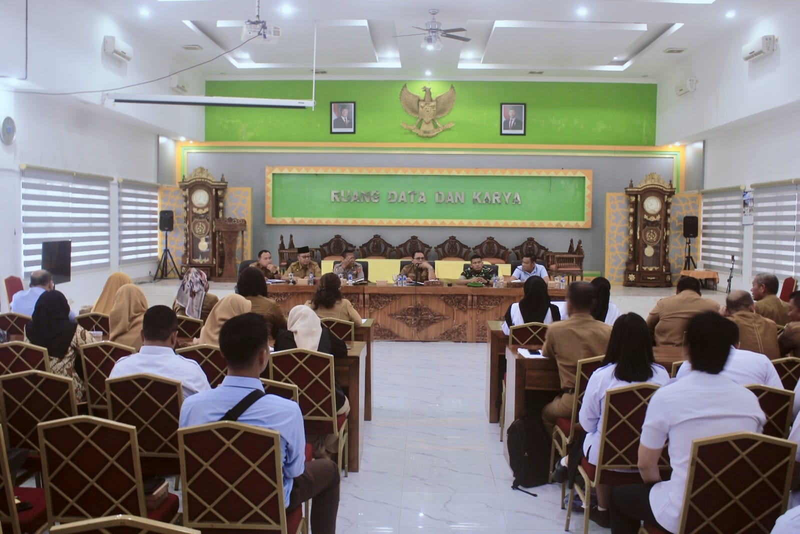 Pertemuan berlangsung di Ruang Data dan Karya, Komplek Kantor Bupati Labuhanbatu, dihadiri jajaran pemerintah daerah, unsur Forkopimda, Kepala SPPG, serta ketua yayasan pengelola dapur. Suasana rapat hangat dan penuh kebersamaan, bukan sekadar formalitas.