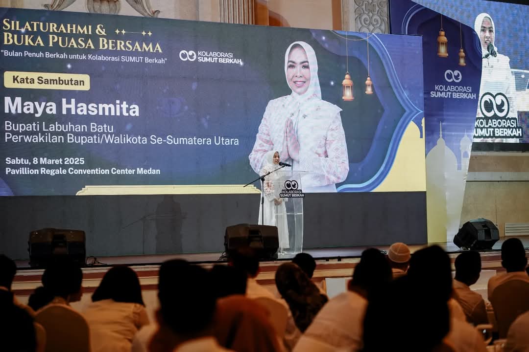 IKNews, LABUHANBATU – Bupati Labuhanbatu dr. Hj. Maya Hasmita, Sp. OG, MKM mendapat kehormatan pada acara silaturahmi dan buka puasa bersama dengan Tim Pemenangan Bobby-Surya di Regale Convention Centre, Medan, Sabtu (08/03) malam.