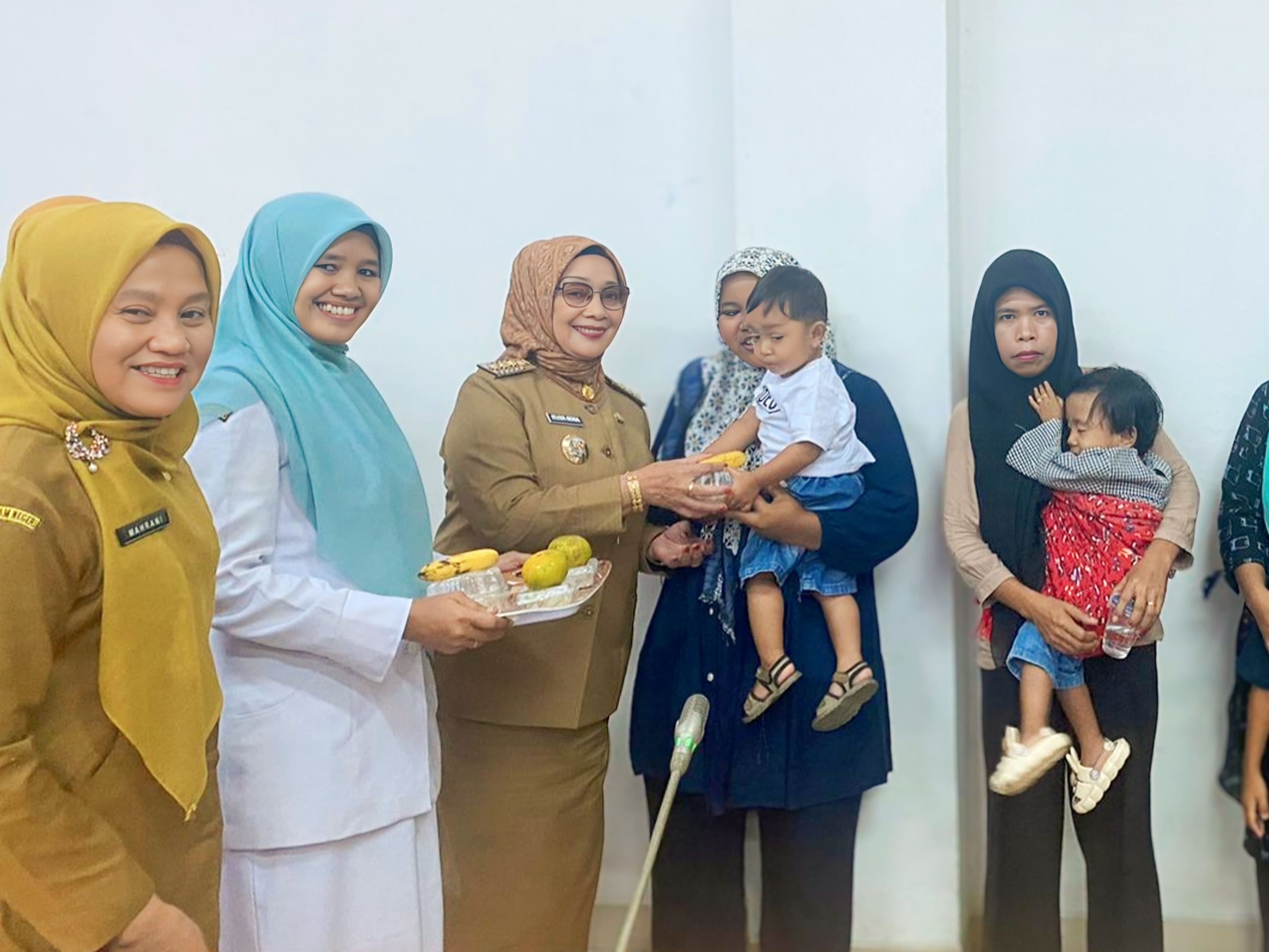 Di sela-sela kegiatan, Plt. Bupati Ellya Rosa bersama sejumlah pimpinan OPD, memberikan makanan tambahan lokal secara simbolis kepada masyarakat yang membutuhkan. (Heri)