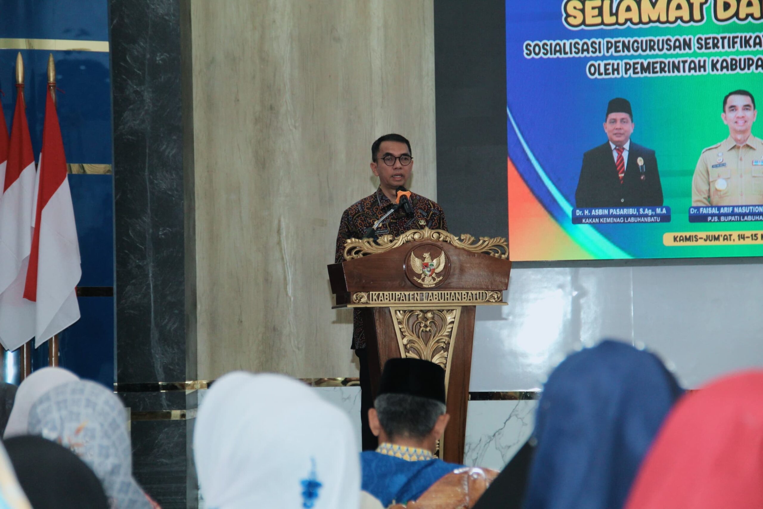 Pjs. Bupati Labuhanbatu juga menghimbau kepada para pelaku pengusaha pangan olahan seperti warung makan, dan restoran untuk segera mengurus sertifikat halal guna menjamin kehalalannya.