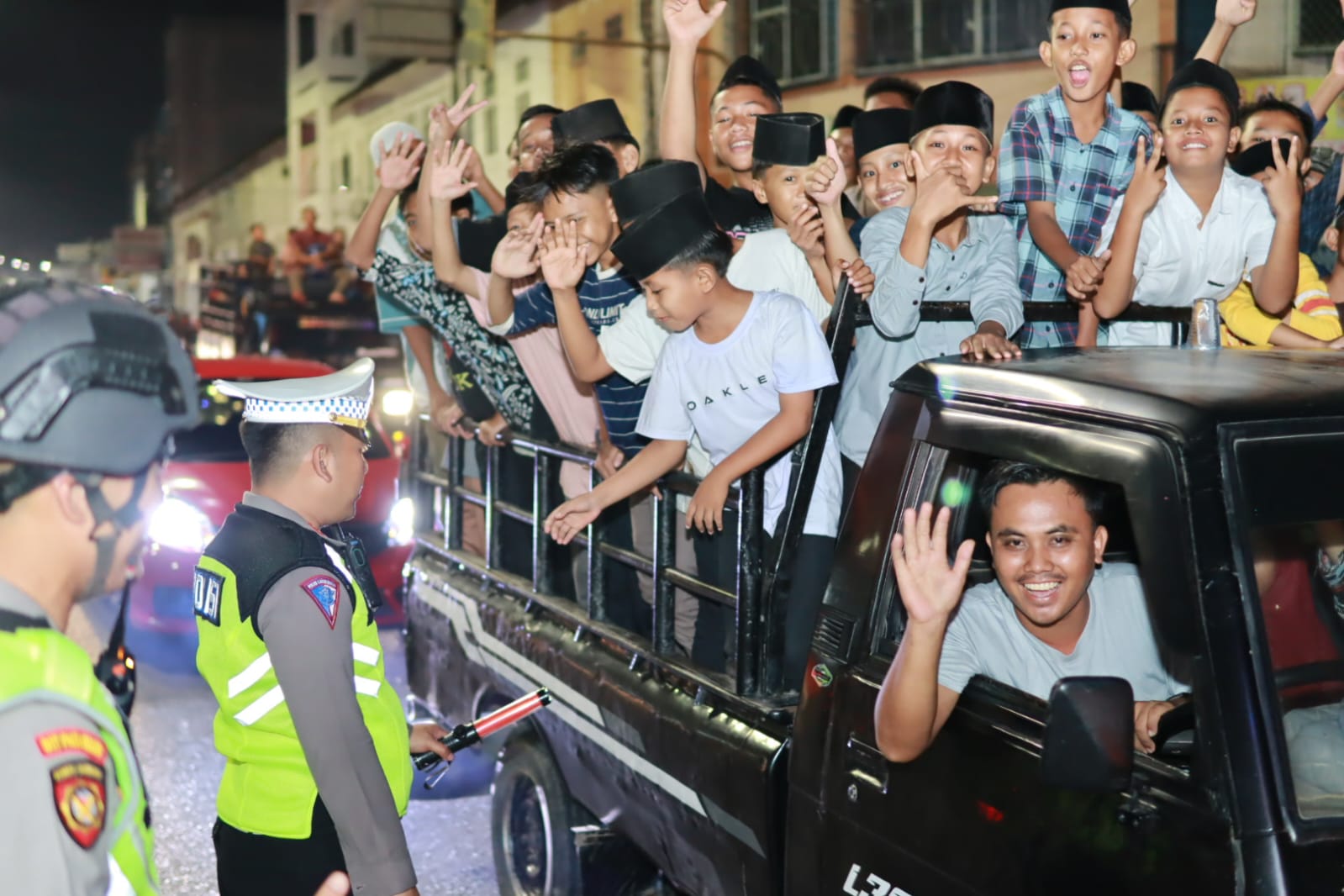 Usai melepas peserta pawai, Plt. Bupati Labuhanbatu beserta Forkopimda menuju Pos Lantas Kota Simpang Empat Rantauprapat guna memonitoring secara langsung arus lalulintas pelaksanaan malam takbir.