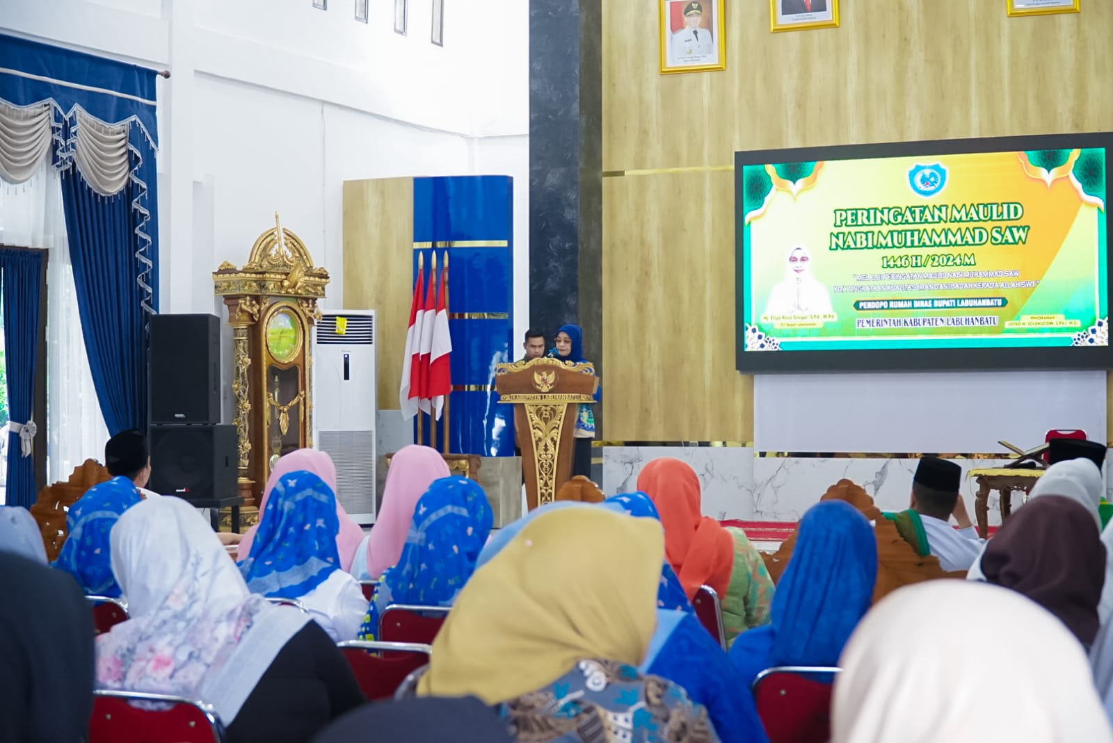 IKNews, LABUHANBATU – Pemerintah Kabupaten Labuhanbatu menggelar Maulid Nabi Muhammad SAW 1446 H yang berlangsung di Aula Pendopo Rumah Dinas Bupati Labuhanbatu, Jalan WR Supratman, Padang Matinggi, Kecamatan Rantau Utara. Kamis (19/09).