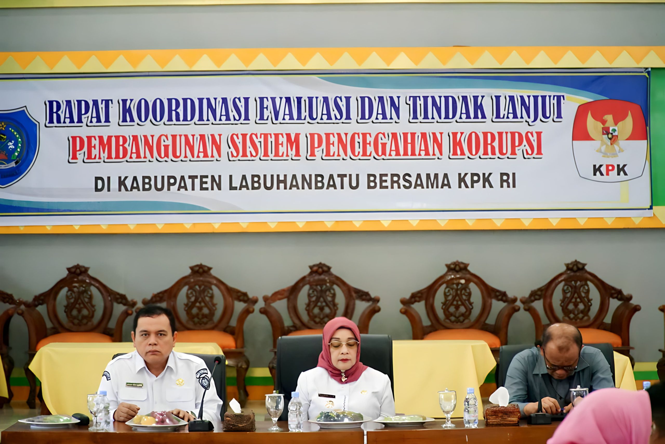 Pemerintah Kabupaten Labuhanbatu menggelar rapat monitoring evaluasi (monev) bersama Satuan Tugas Koordinasi Supervisi (Korsup) Pencegahan wilayah I KPK. Rabu (24/04/2024) di ruang data dan karya Kantor Bupati Labuhanbatu.