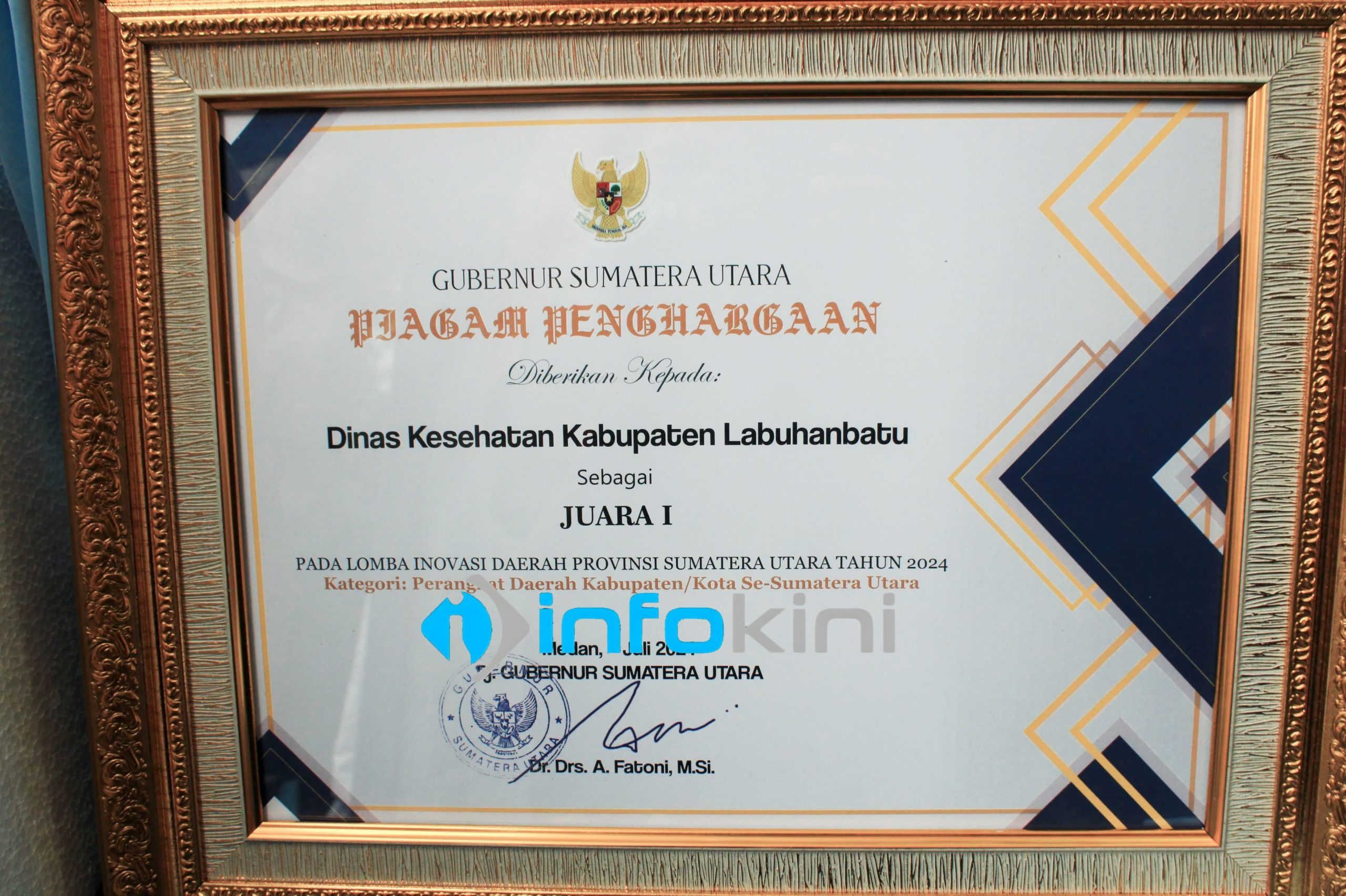IKNews, LABUHANBATU – Pemerintah Kabupaten Labuhanbatu raih penghargaan Juara I pada Lomba Inovasi Daerah di acara North Sumatera Inovation tahun 2024 yang dilaksanakan di Medan se Sumatera Utara.