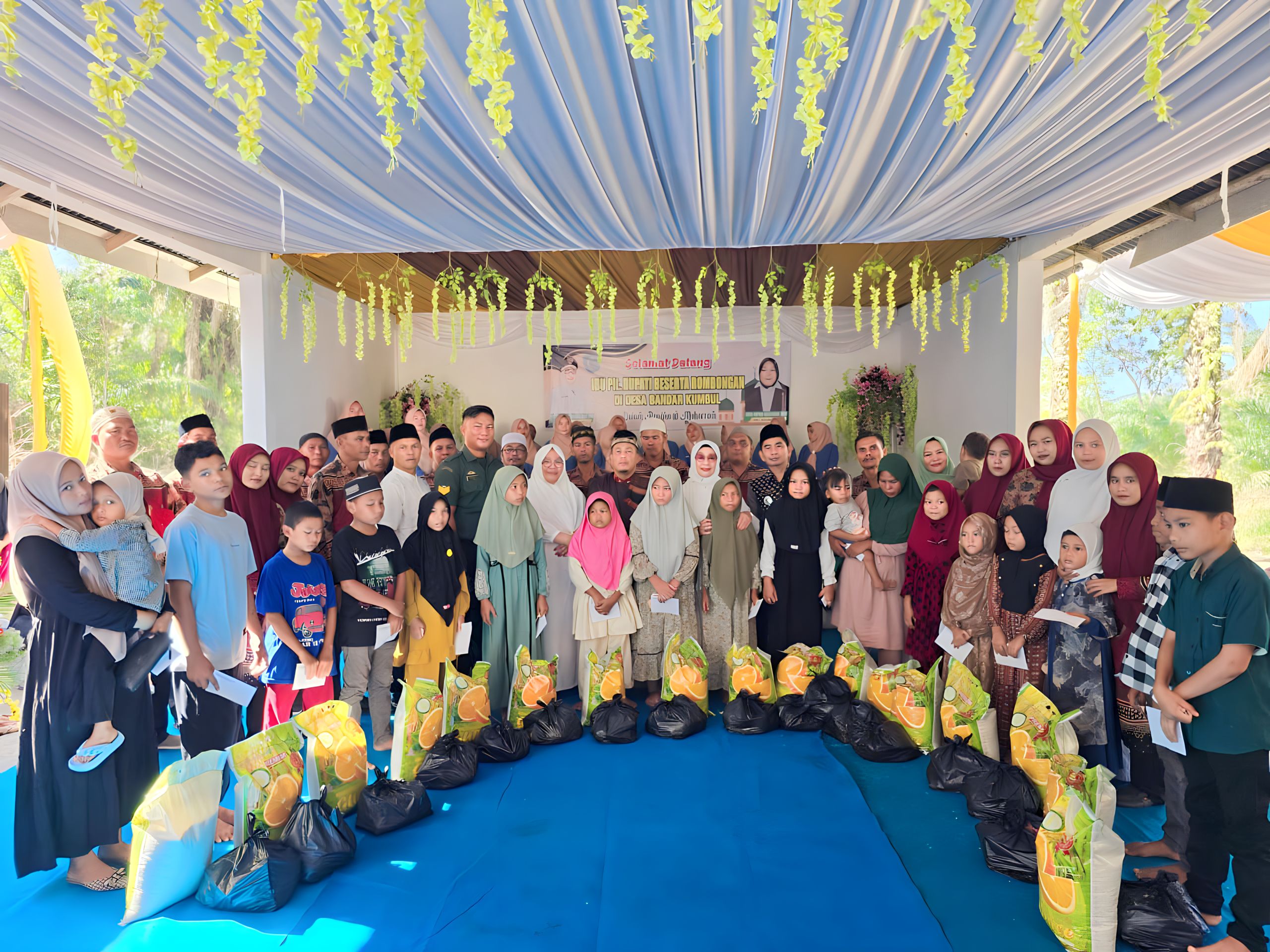 Pemberian santunan diserahkan langsung oleh Pelaksana Tugas (Plt) Bupati Labuhanbatu Hj. Ellya Rosa Siregar, S.Pd, MM bersama Camat Bilah Barat M. Noor Putra, Pj. Kepala Desa Bandar Kumbul Aida Fatma.
