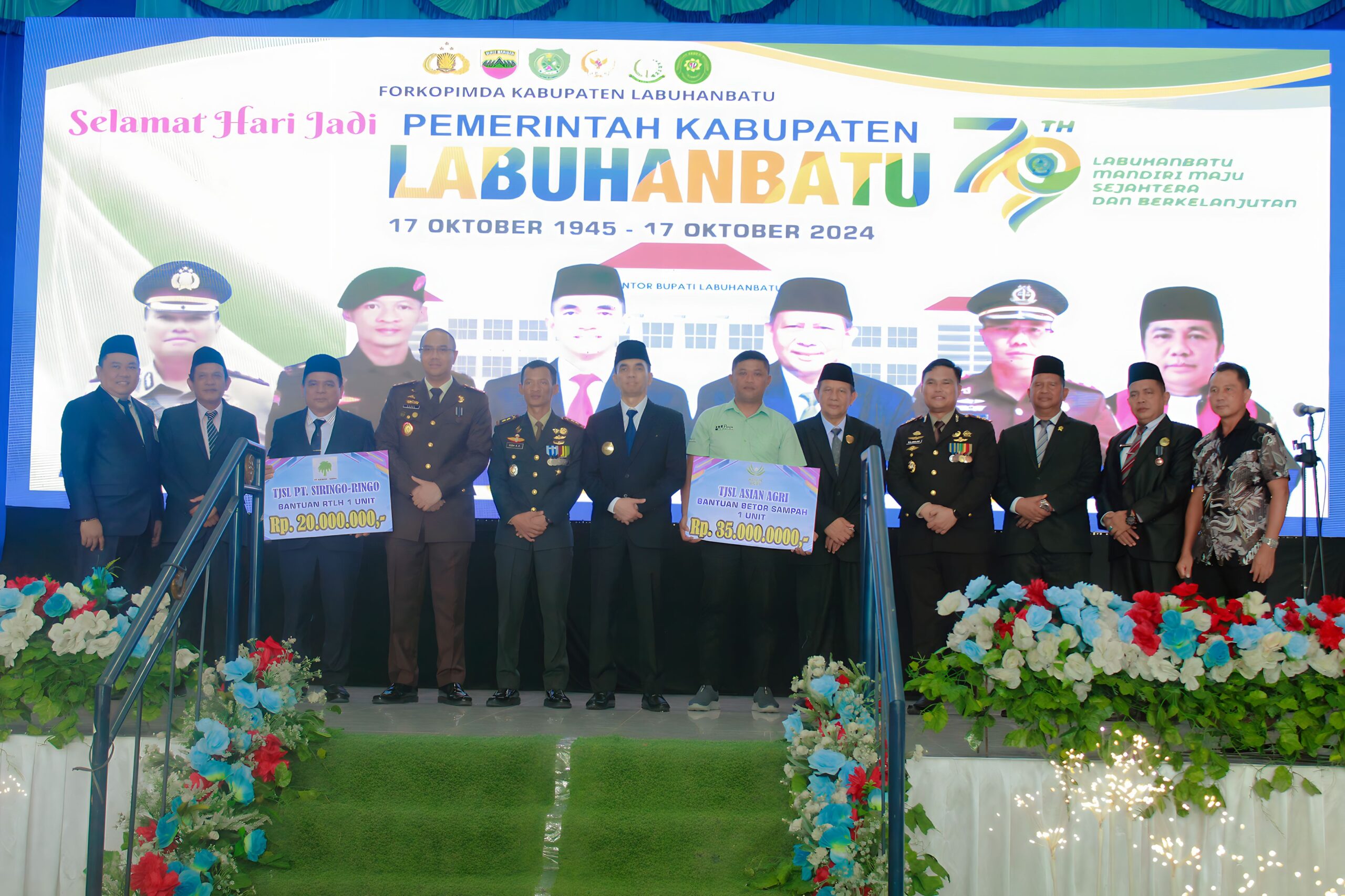 Rangkaian kegiatan Resepsi dalam memperingati Hari Jadi ke-79 Kabupaten Labuhanbatu diantaranya bakti sosial, anjangsana, pemberian penghargaan kepada peserta pemenang lomba, pemberian bantuan beasiswa, pemberian bantuan dari BPJS, dan dan pemberian santunan BPJS serta lainnya. (Heri)
