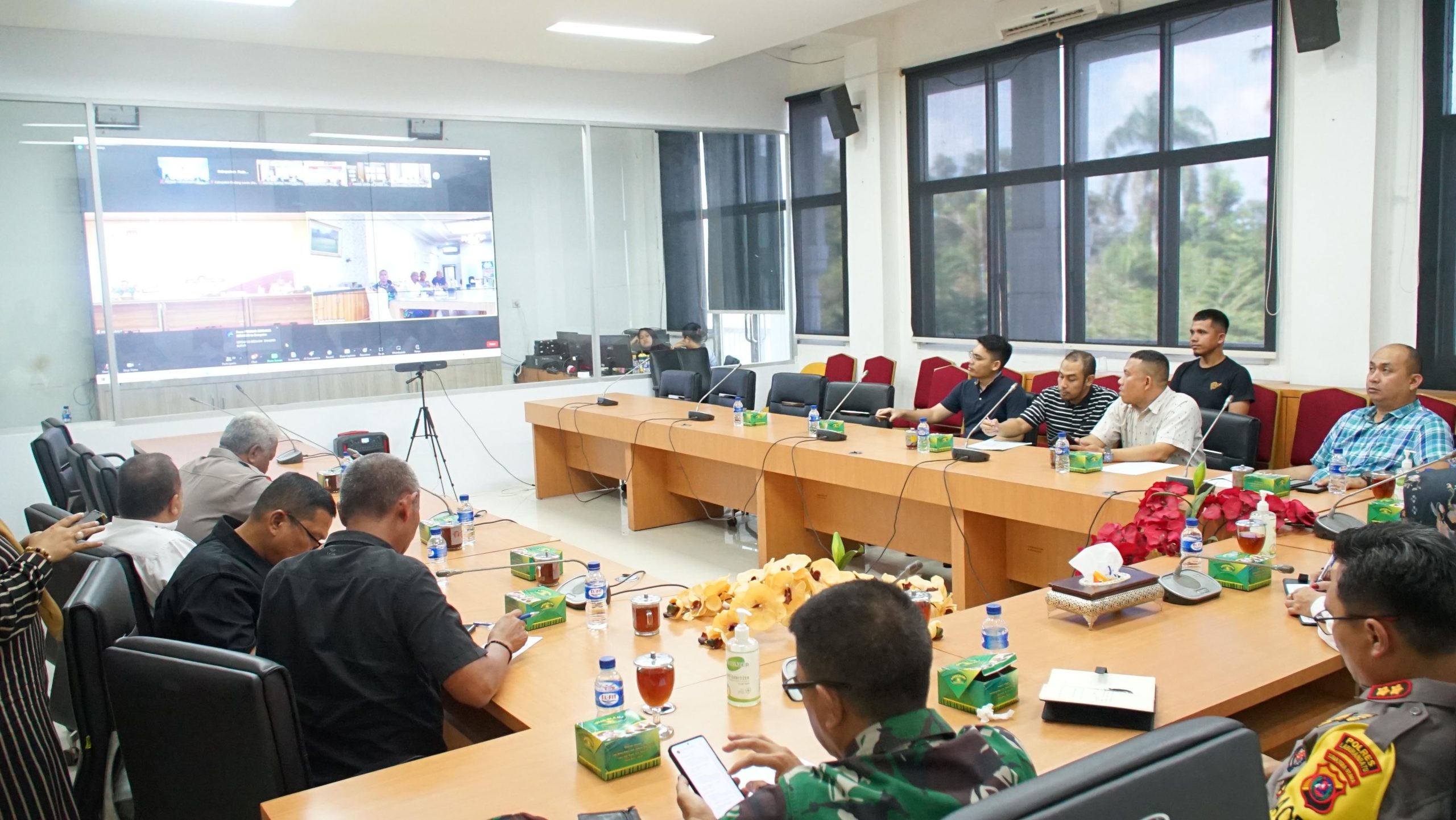 Turut hadir mengikuti Video Conference Perkembangan Pemilu se-Sumut, para Kepala Daerah, dan Forkopimda se-Sumatera Utara.*