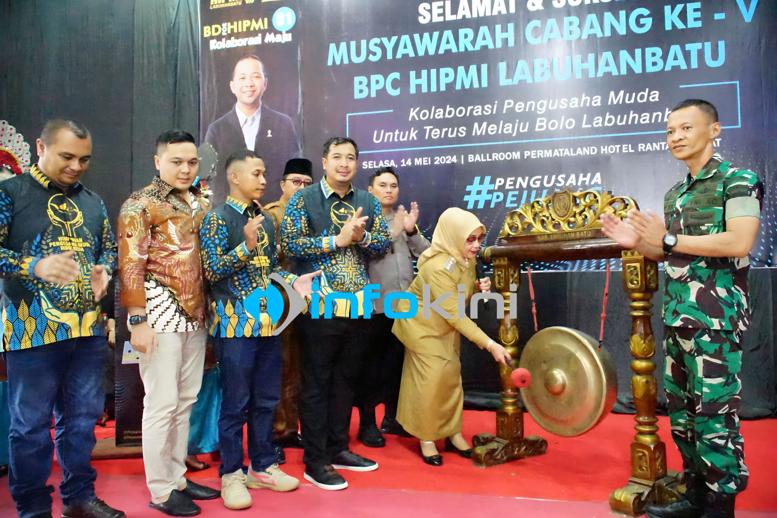 Pelaksana Tugas Bupati Labuhanbatu Hj. Ellya Rosa Siregar, S.Pd, MM membuka secara resmi Musyawarah Cabang Ke-V Himpunan Pengusaha Muda Indonesia (HIPMI) Kabupaten Labuhanbatu di Aula Hall Permata Land Rantauprapat, Jl. A. Yani Rantauprapat Kecamatan Rantau Utara. Selasa (14/05/2024).
