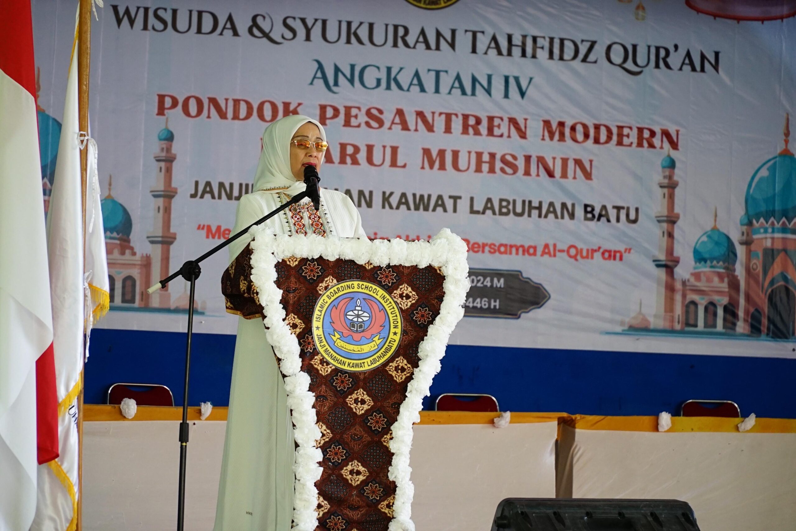 IKNews, LABUHANBATU – Pelaksana Tugas (Plt) Bupati Labuhanbatu Hj. Ellya Rosa Siregar, S. Pd, MM dampingi Penjabat (Pj) Gubernur Sumatera Utara Drs. Agus Fatoni pada kegiatan Wisuda dan Syukuran Tahfidz Qur’an angkatan IV Pondok Pesantren Daarul Muhsinin, Janji Manahan Kawat Kecamatan Bilah Hulu. Minggu (01/12).