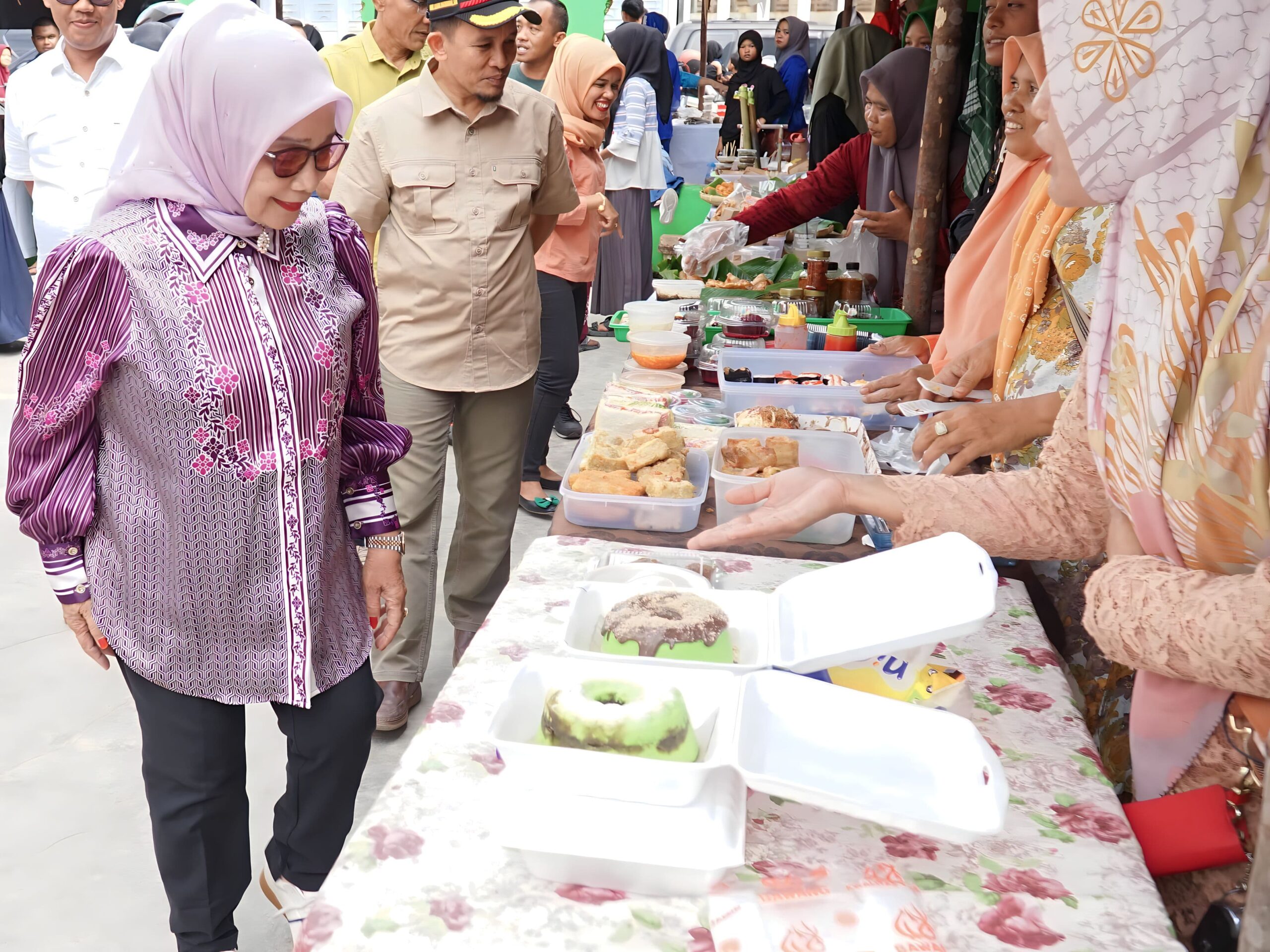 Disitu, Plt Bupati Ellya Rosa Siregar mendatangi satu persatu para pedagang yang sedang menjajakan jualannya, sambil bercanda tawa, ia juga membeli jajanan tradisional dari para pedagang.
