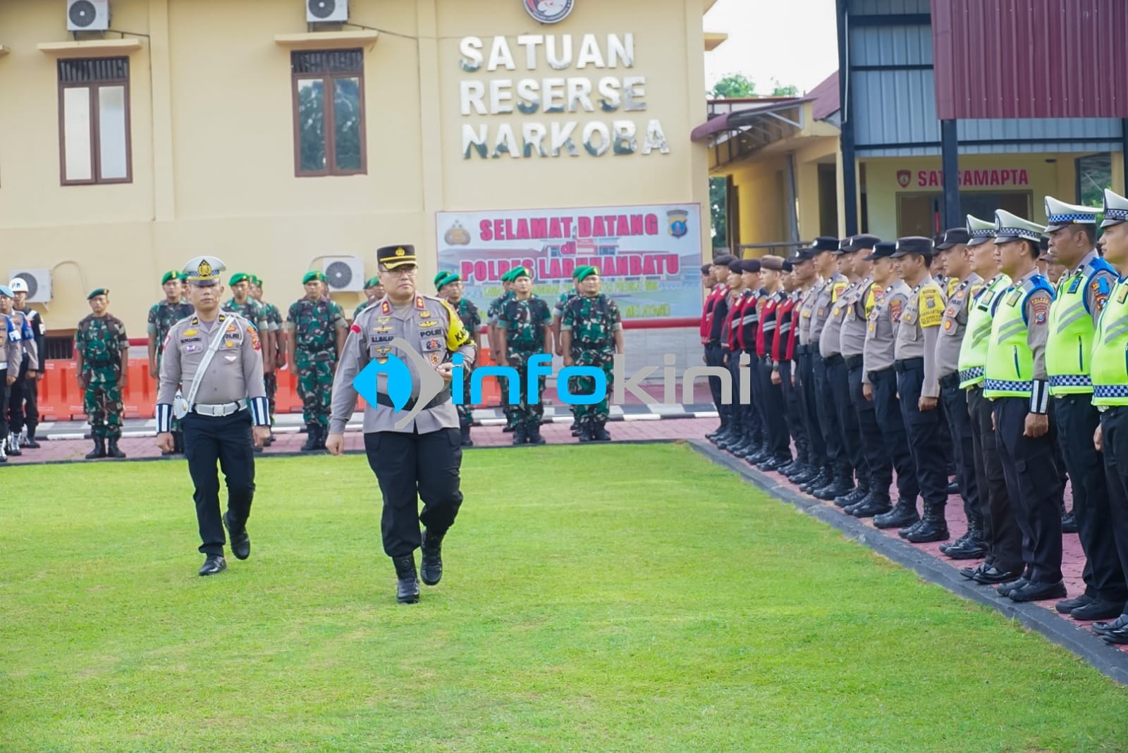 Apel gelar pasukan yang dipimpin Kapolres Labuhanbatu AKBP Dr. Bernhard L Malau, ini diikuti Pelaksana Tugas (Plt) Bupati Labuhanbatu Hj. Ellya Rosa Siregar, S.Pd,MM, Dandim 0209/LB Letkol Inf. Yudi Ardiyan Saputro, Asisten I Setdakab Drs. H. Sarimpunan Ritonga, sejumlah Kepala OPD Labuhanbatu dan Labuhanbatu Utara, PJU Polres Labuhanbatu, dan seluruh personel TNI Polri serta yang tergabung dalam Forkopimda.