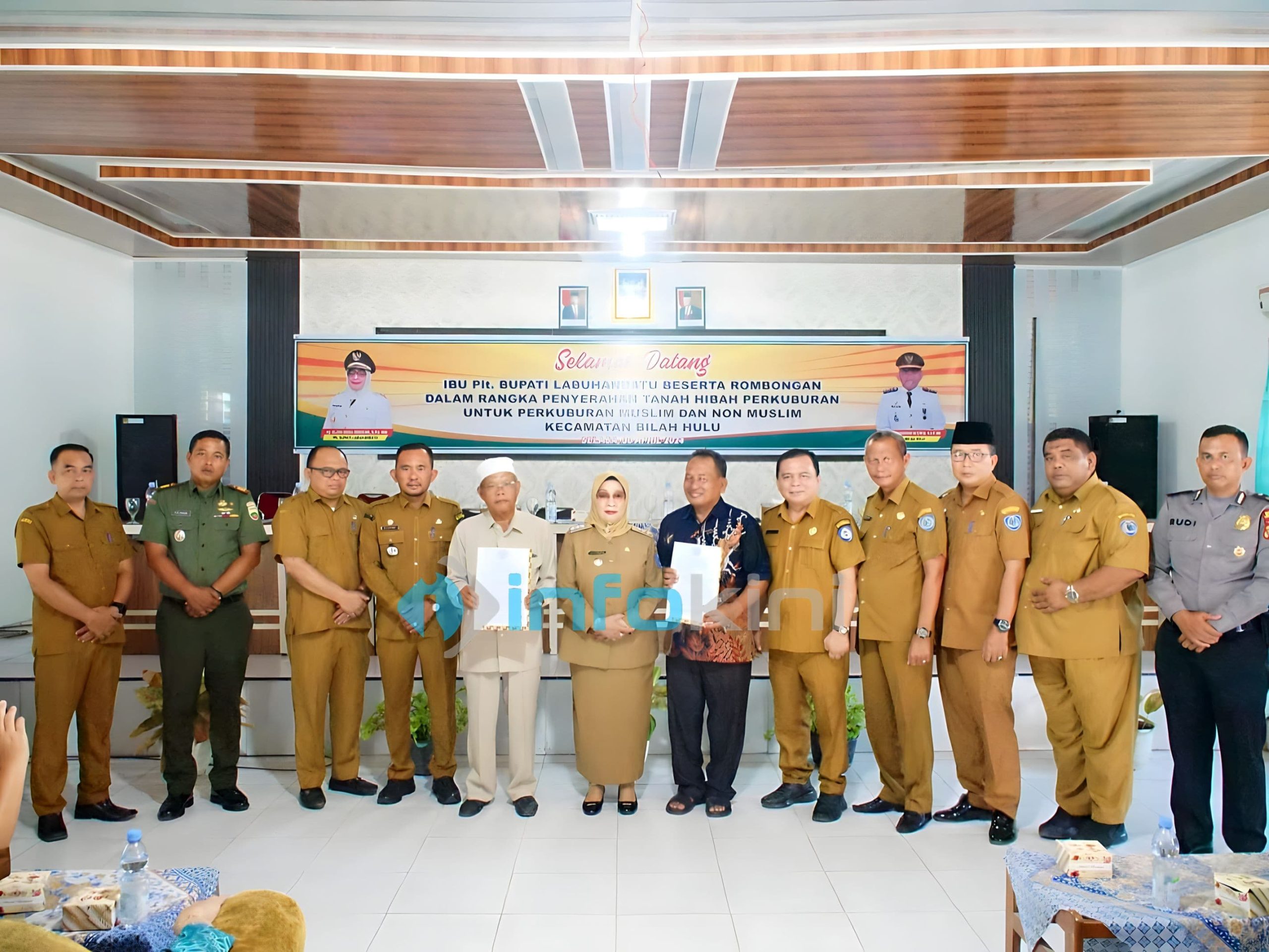 Penyerahan Sertifikat Tanah Hibah TPU tersebut dilaksanakan di Kantor Camat Bilah Hulu.