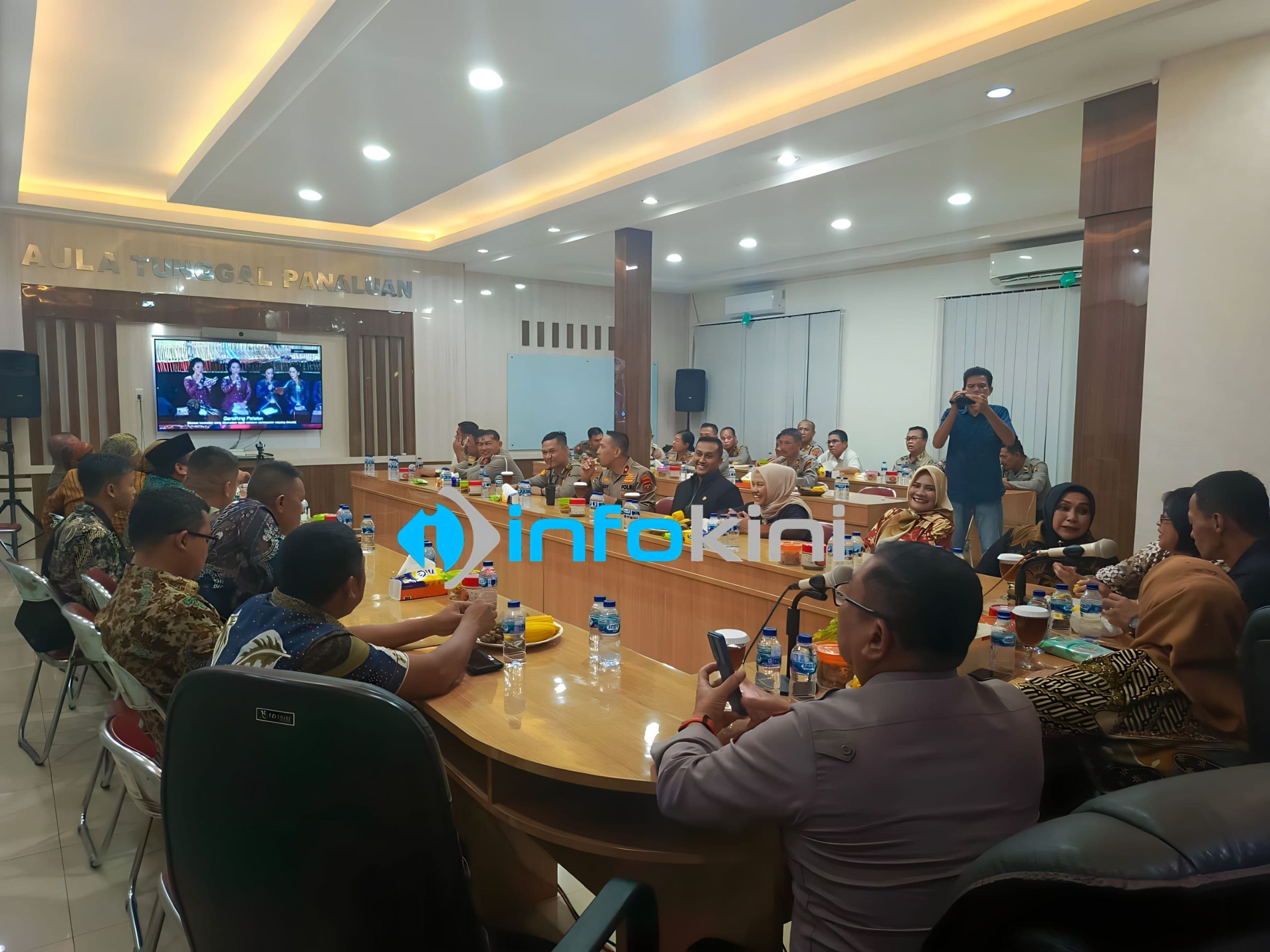 Turut hadir menyaksikan live streaming, Wakapolres Labuhanbatu Kompol M.H. Matondang, Dandim 0209/LB Letkol Inf. Yudy Ardiyan Saputro, PJU Polres Labuhanbatu, Forkopimda, sejumlah kepala OPD, sejumlah tokoh agama, tokoh budaya, dan tamu undangan lainnya. (Heri)