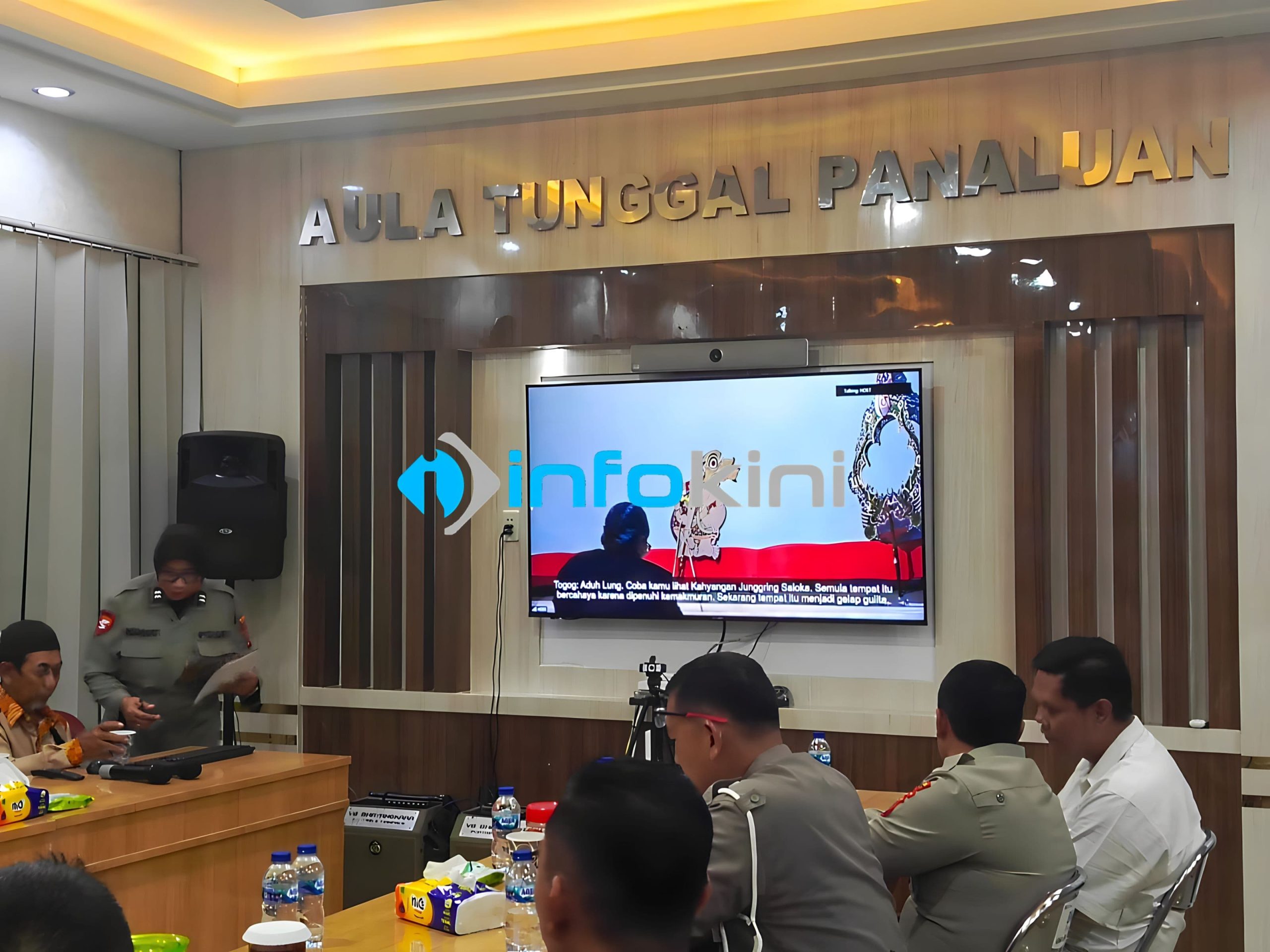 Kegiatan yang dilaksanakan oleh Kepolisian Republik Indonesia tersebut mengangkat lakon wayang kulit dengan tema “Tumurune Wiji Sejati”.