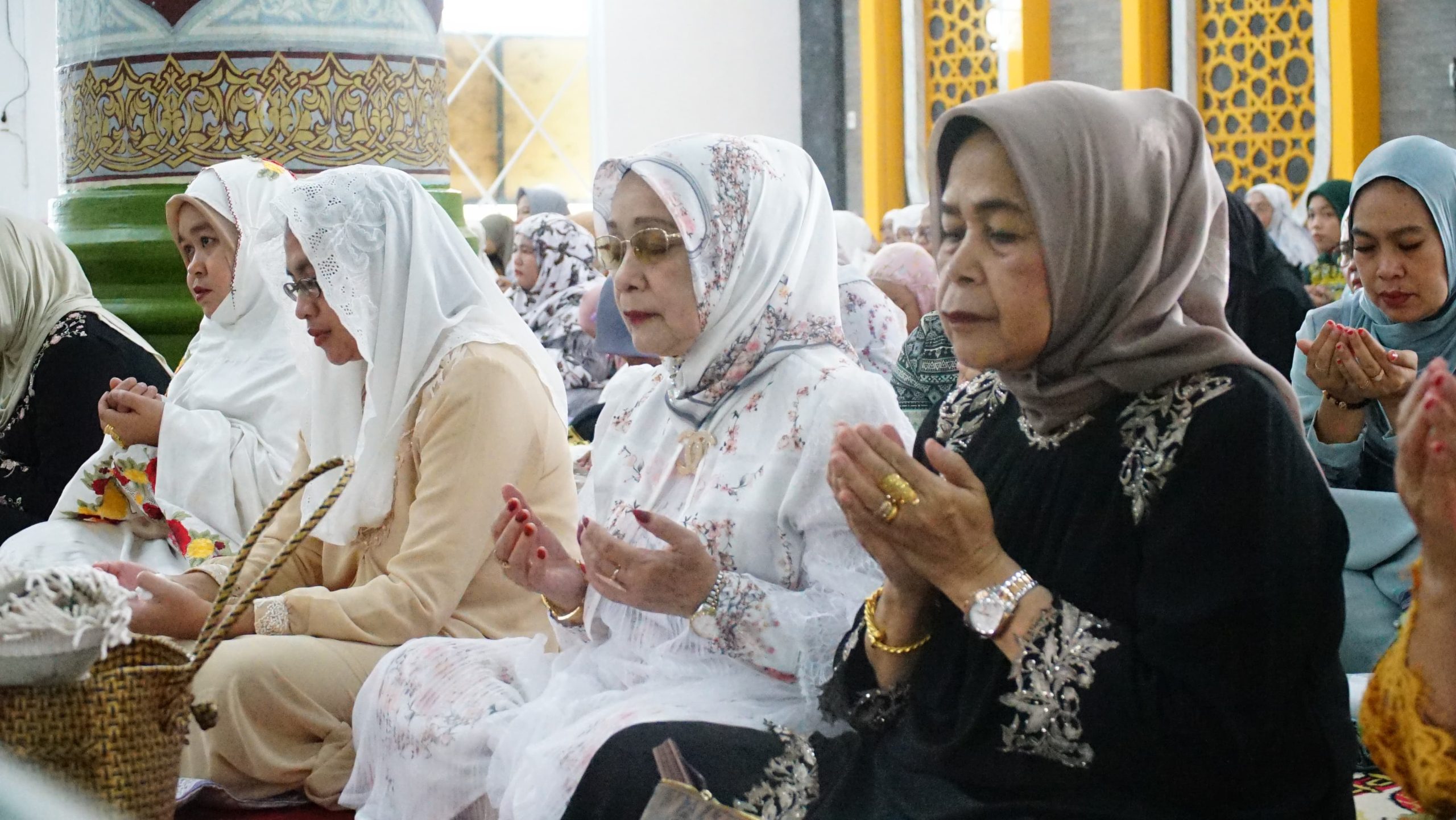 Sesampainya dibarisan sholat Plt. Bupati Ellya Rosa Siregar hadir barisan terdepan jama’ah perempuan.