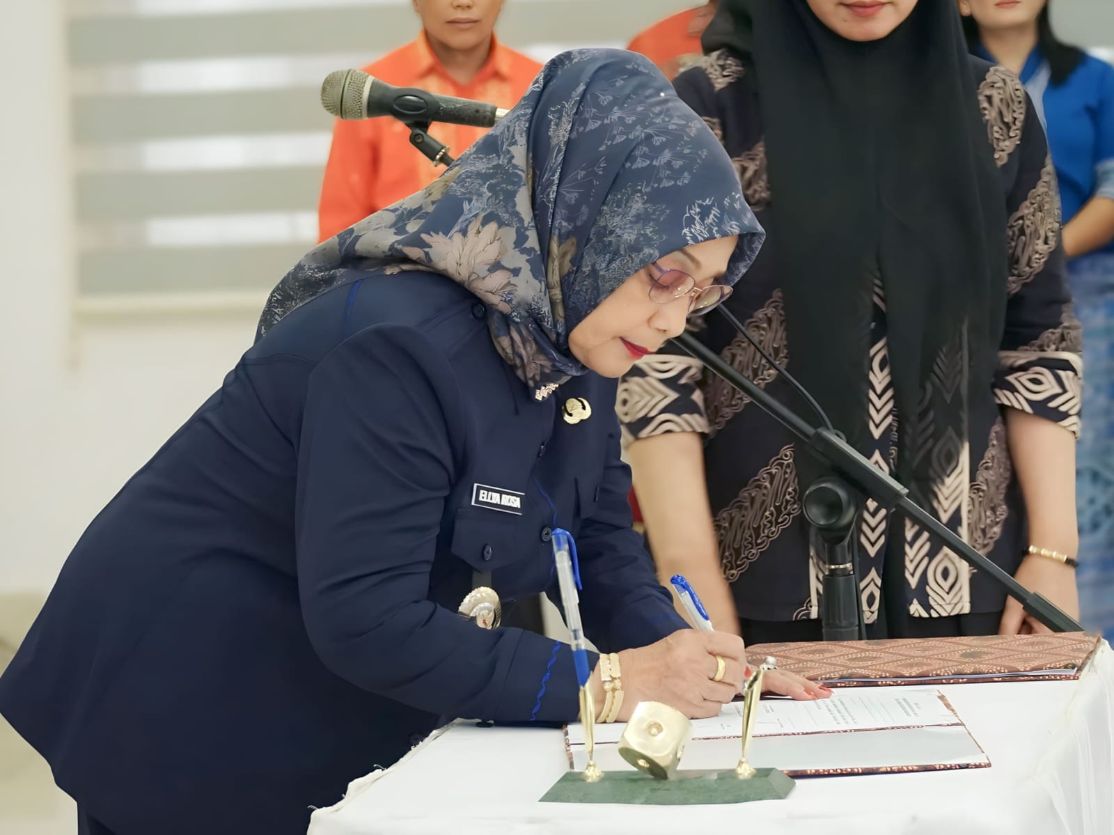 IKNews, LABUHANBATU – Pelaksana Tugas (Plt) Bupati Labuhanbatu Hj. Ellya Rosa Siregar, S.Pd, MM kukuhkan Perpanjangan 2 tahun Masa Jabatan 51 Kepala Desa di Kabupaten Labuhanbatu bertempat di Ruang Data dan Karya Kantor Bupati. Kamis (12/09).