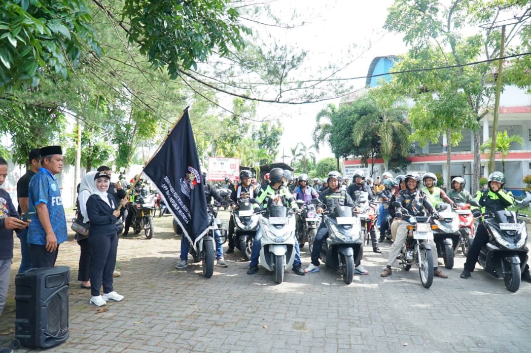 Gambar: Suasana pelepasan Touring Bonapasogit V oleh Bupati Labuhanbatu dr. Hj. Maya Hasmita, Sp.OG., MKM di GOR Rantauprapat, Sabtu, 11 Oktober 2025. (Foto: Heri/IKN).