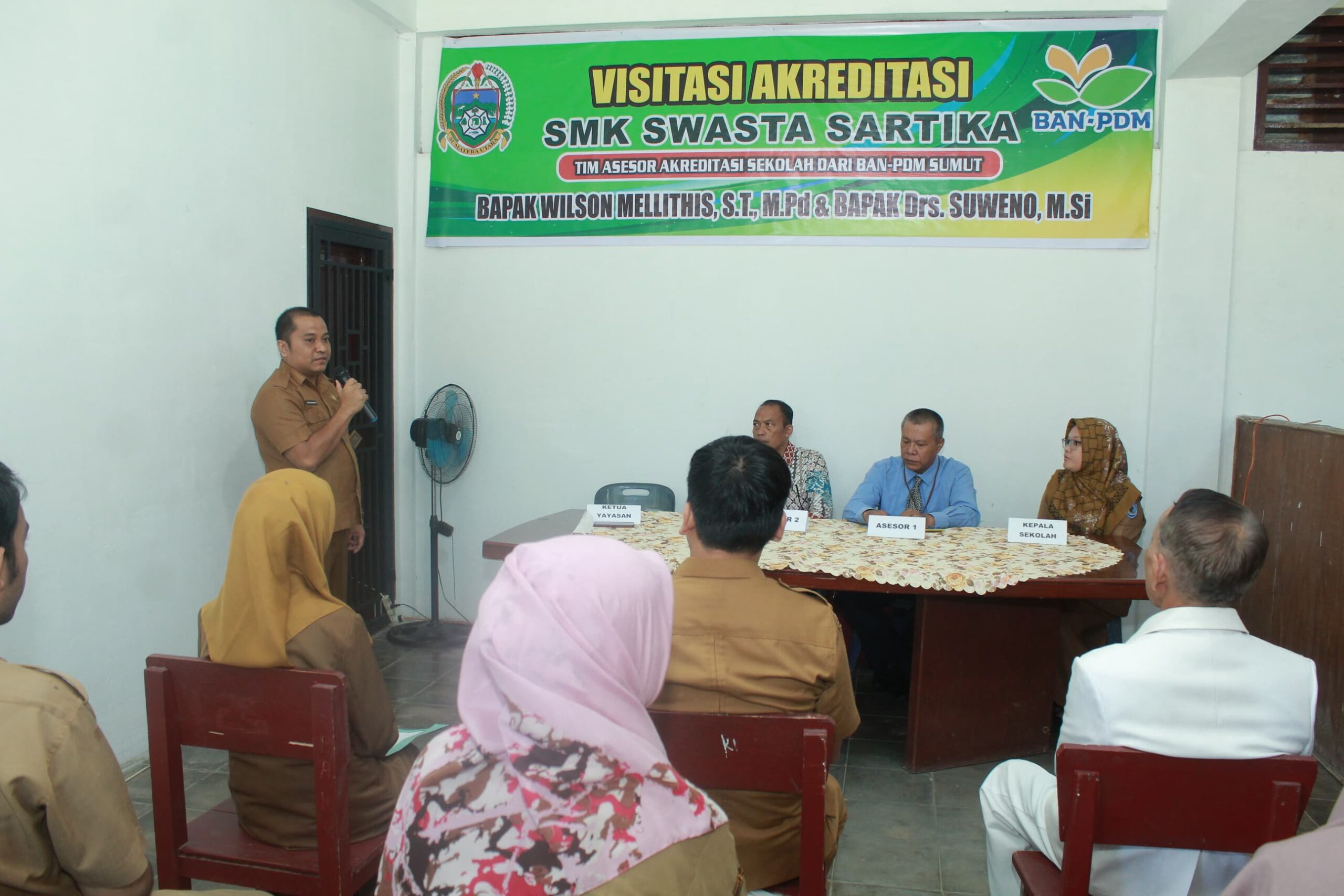 “Selamat datang di Gedung SMK Kesehatan Sartika Rantauprapat, kami menyambut baik kehadiran tim assesor yang akan melaksanakan visitasi akreditasi di sekolah kami”, ujar Ketua Yayasan SMK Sartika Dedi Heriansyah Nasution, S.Kep, Ns, MM, CH. CHt.