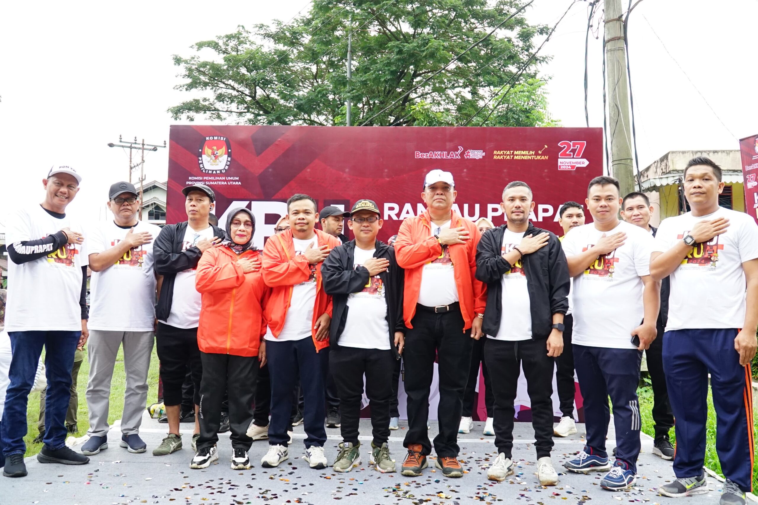 Kegiatan tersebut langsung dihadiri oleh Pelaksana Tugas (Plt) Bupati Labuhanbatu Hj. Ellya Rosa Siregar, S.Pd, MM bersama unsur Forkopimda, Asisten I Setdakab, Sejumlah Kepala OPD, Komisioner KPU Provinsi Sumut, KPU Labuhanbatu, dan para peserta Fun Run serta senam sehat.