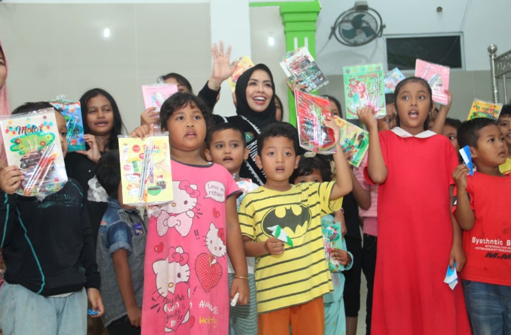 Tidak ada jarak formal. Maya Hasmita duduk sejajar dengan anak-anak, mengajak mereka bernyanyi dan bertepuk tangan. Sejumlah orang tua yang berada di sekitar masjid terlihat tersenyum, menyaksikan anak-anak mereka kembali ceria setelah berminggu-minggu berada dalam situasi sulit akibat bencana.