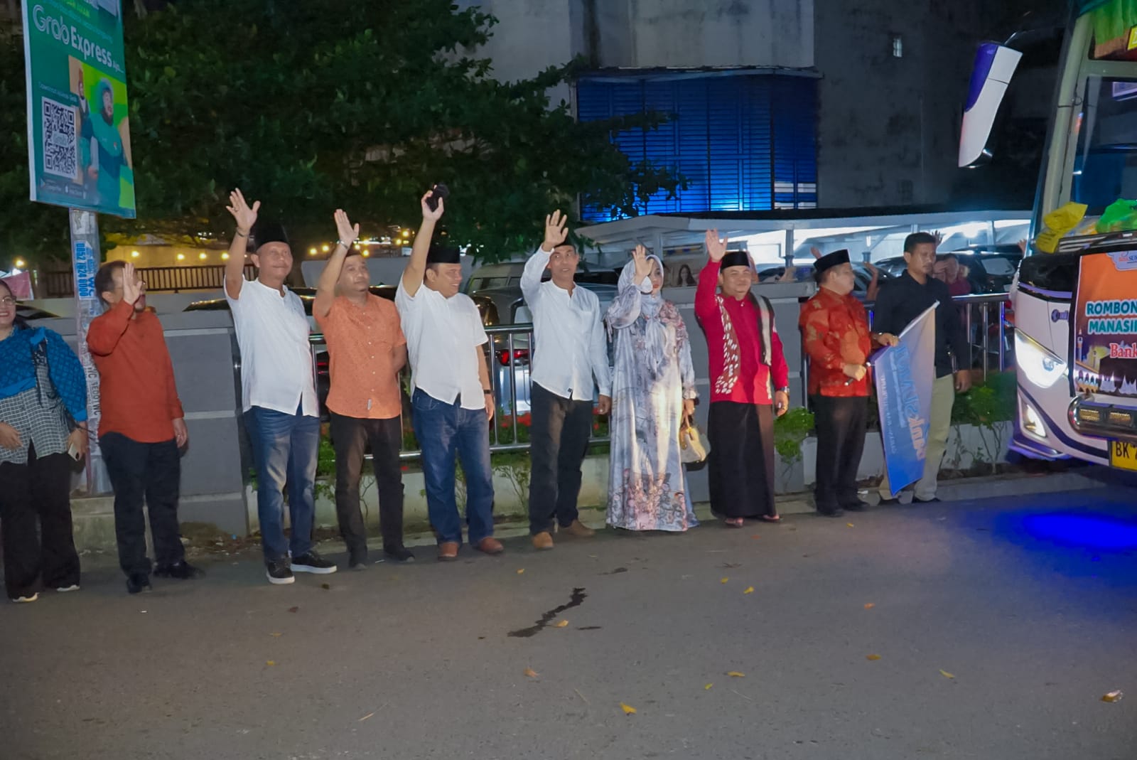 Gambar: Wabup Jamri Lepas Jamaah Manasik Haji Akbar Bank Sumut Rantauprapat, (13/4/2025).