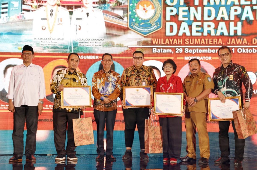 Gambar: Wali Kota Batam, Amsakar Achmad, saat membuka Rapat Koordinasi Pendapatan Daerah Wilayah Sumatera, Jawa, dan Kalimantan di Harmoni One Hotel, Batam, Selasa, 30 September 2025. (Foto : Diskominfo Batam).
