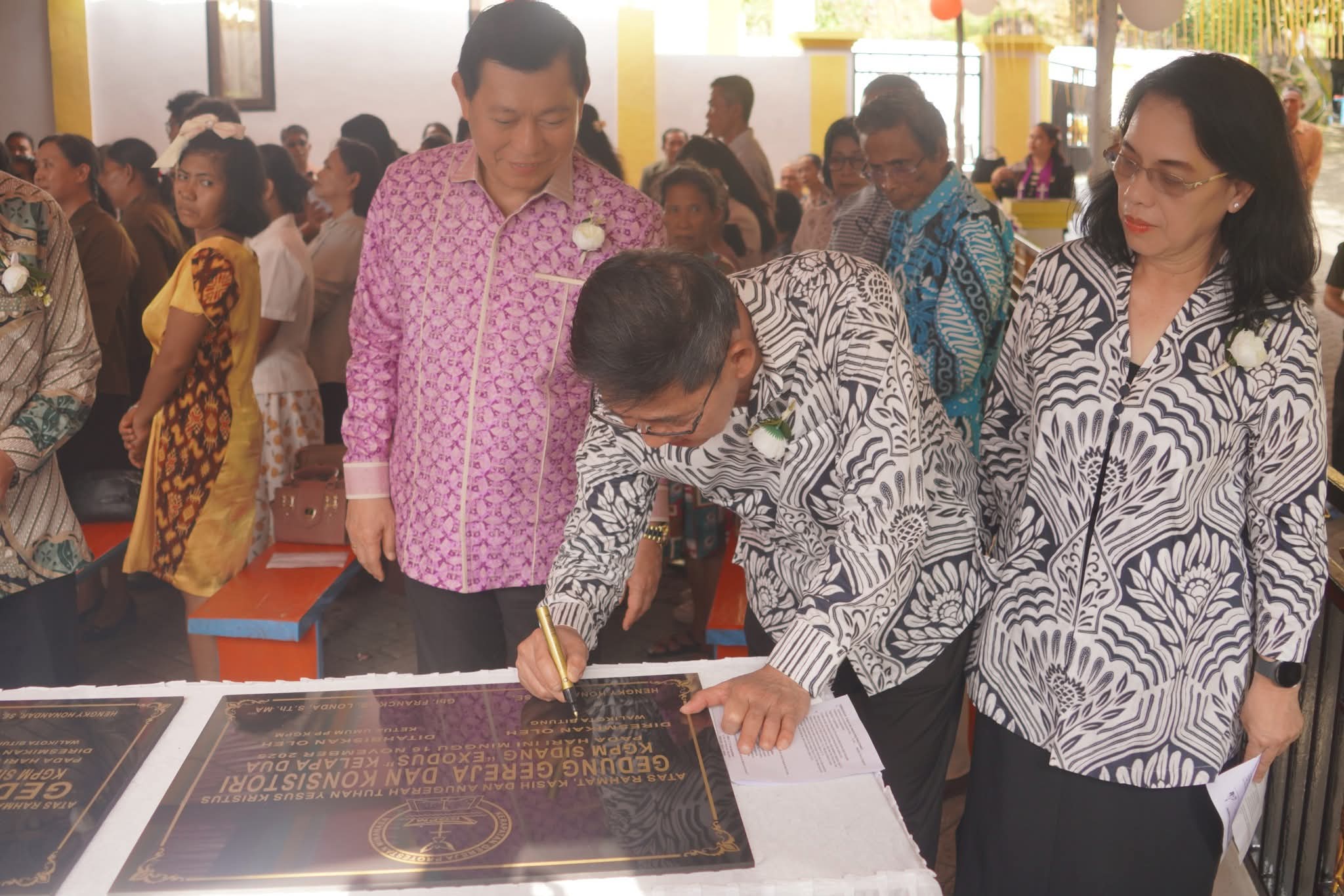 “Gedung gereja ini jangan hanya menjadi tempat peribadatan, tetapi juga harus menjadi pusat persatuan dan pembangunan sosial di tengah masyarakat.” Pungkasnya