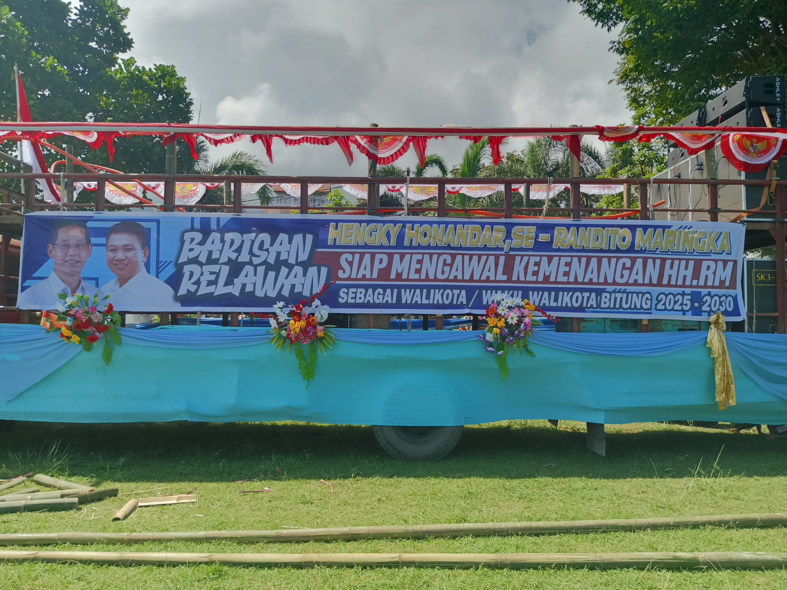 Diketahui rombongan pasangan Hengky-Randito, akan menuju ke KPU Kota Bitung, dengan iringan kendaraan roda dua dan roda empat, dengan pendukung 500 orang, sesuai kesepakatan bersama KPU Bitung.