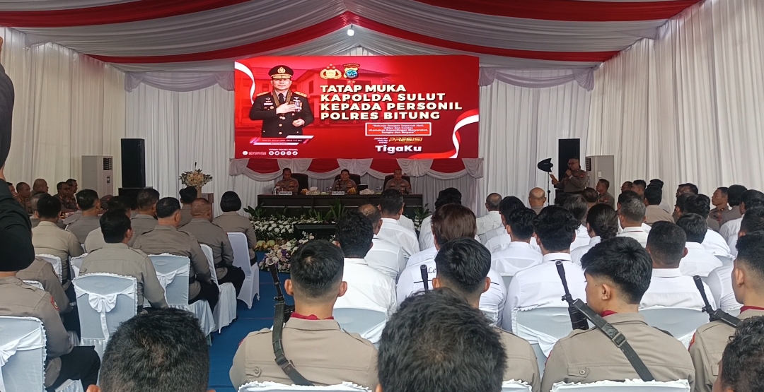 Dalam kunjungannya, Kapolda Sulut berkesempatan langsung bertatap muka dengan seluruh Personil Polres Bitung.