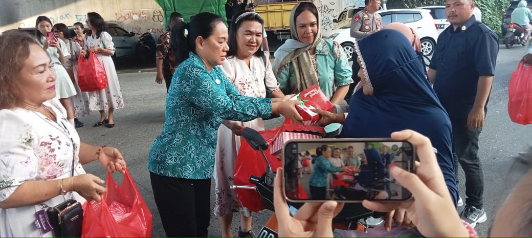 Pererat Talih Silahturahmi, Istri Walikota Bitung, Ny. Ellen Honandar Sondakh Bagikan Takjil Gratis