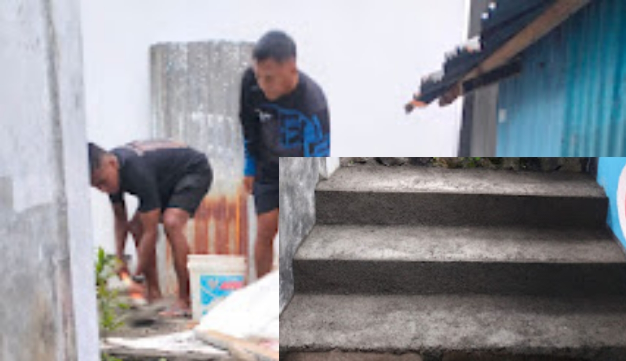 Salah satu kegiatan yang dilakukan adalah pengecoran tangga kantor kelurahan untuk meningkatkan aksesibilitas dan kenyamanan bagi masyarakat.