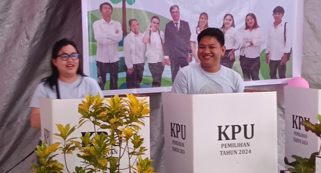 IKNnews Bitung – Calon Wakil Walikota Bitung nomor Urut 2 Randito Maringka bersama istri tercinta memberikan hak pilihnya di Tempat Pemungutan Suara (TPS) 3 Kelurahan Aertembaga satu Kecamatan Aertembaga, Rabu, (27/11/ 2024).