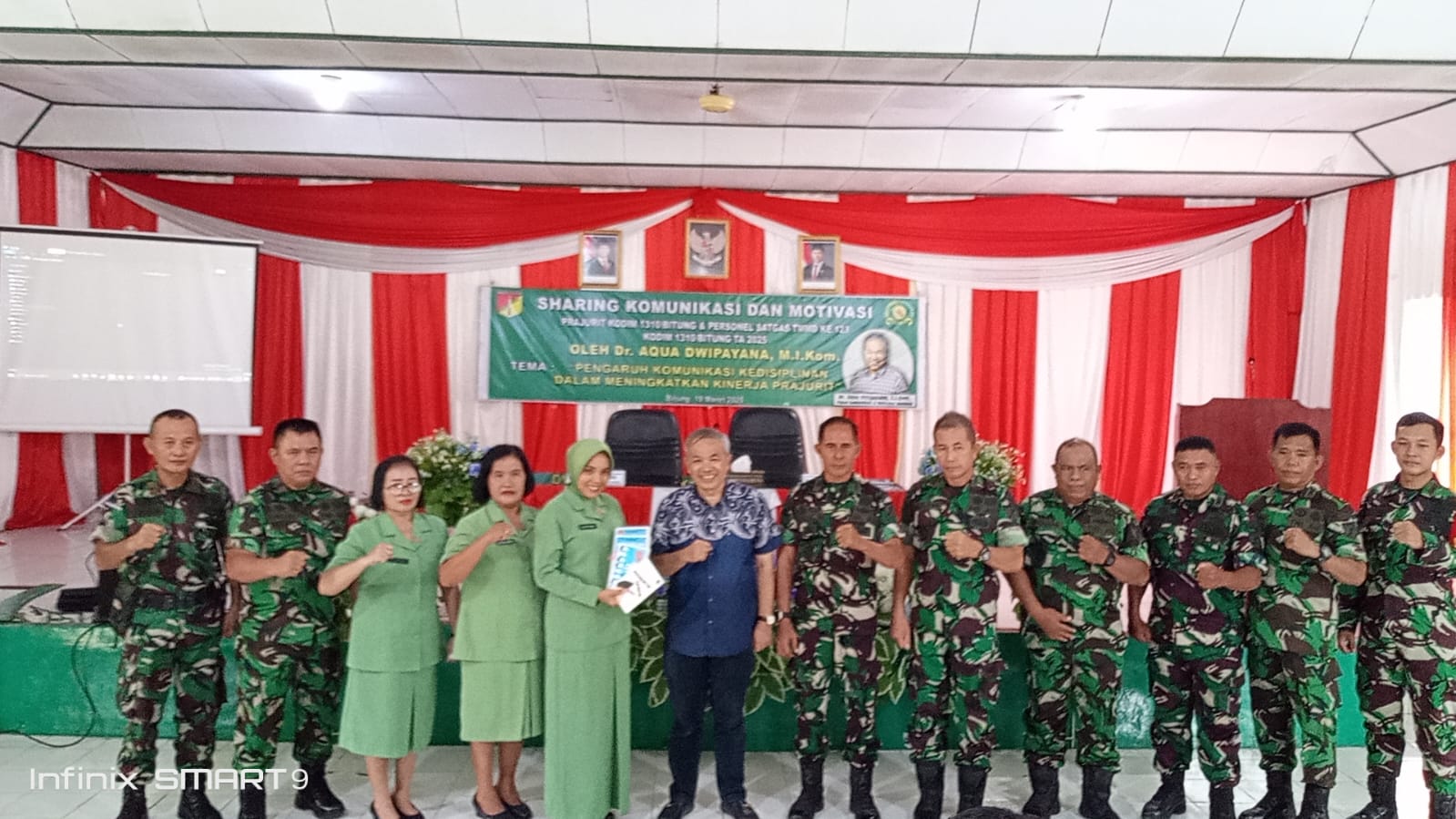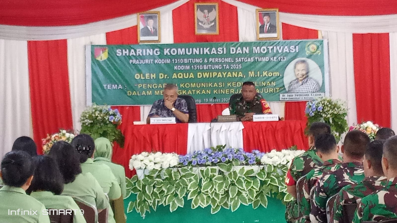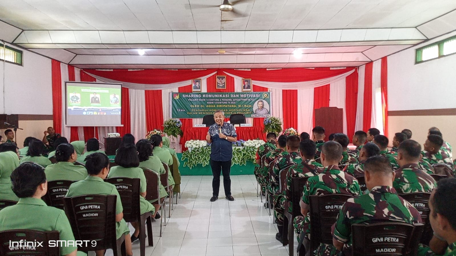 Kegiatan yang dilaksanakan di Aula Makodim 1310/Bitung ini menghadirkan Pakar Komunikasi dan motivasi nasional, Dr. Aqua Dwipayana, M.I.Kom sebagai narasumber.
